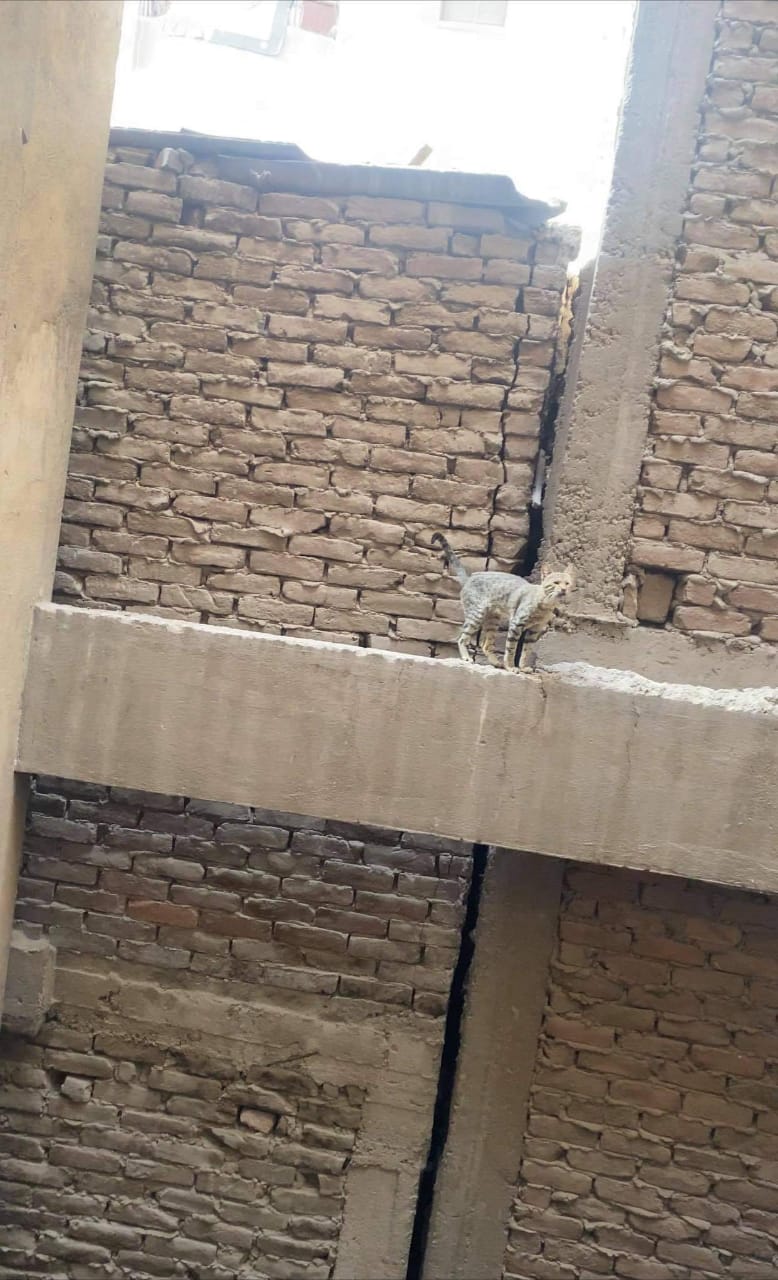 وأضاف:" البنت صاحبة القطة وقتها فقدت الأمل في إنقاذ القطة العالقة من 4 أيام بدون أكل ولا شرب، لكن أنا قررت إني هنزل وأحاول أوسع أسياخ الخرسانة وأعمل فتحة أعدي منها، وده طول مدة الإنقاذ لخمس ساعات عمل شاق".