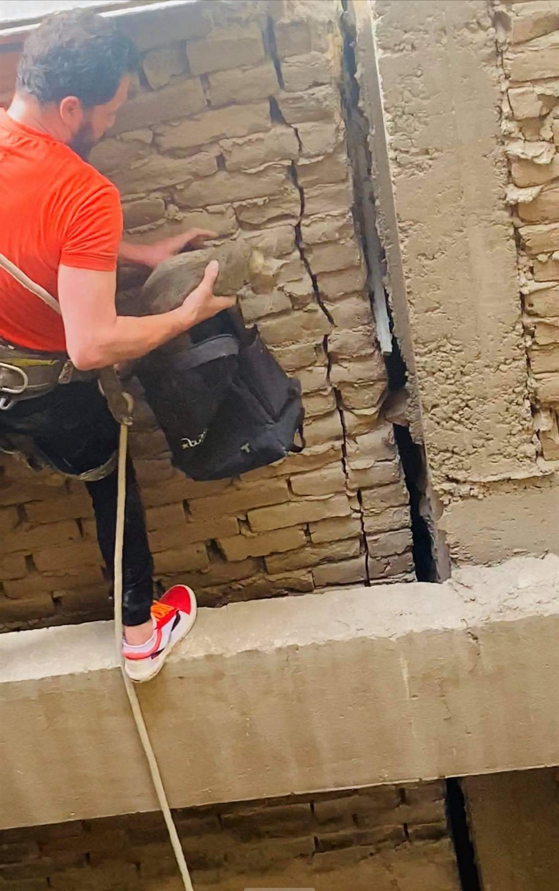 وتابع :" العقبة الأخيرة كانت إن أقرب مكان للخروج على ارتفاع 4 طوابق، لازم أطلعها عشان أقدر أخرج، وآخر حالة إنقاذ كانت أول أمس لقط فيصل".