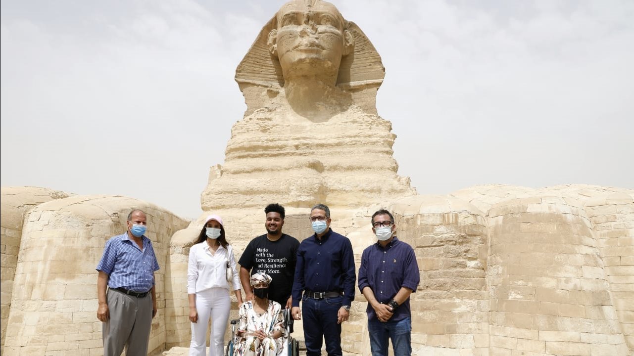 ومن أمام تمثال أبو الهول، تبادل وزير السياحة والآثار والسيدة جلوريا أولكر أطراف الحديث، حيث رحب الدكتور خالد العناني بها، وشكرها على حبها وشغفها بمصر وحضارتها العريقة، معربًا لها عن ثقته بأن زيارتها إلى مصر ستمنحها طاقة إيجابية تساعدها على الشفاء العاجل.