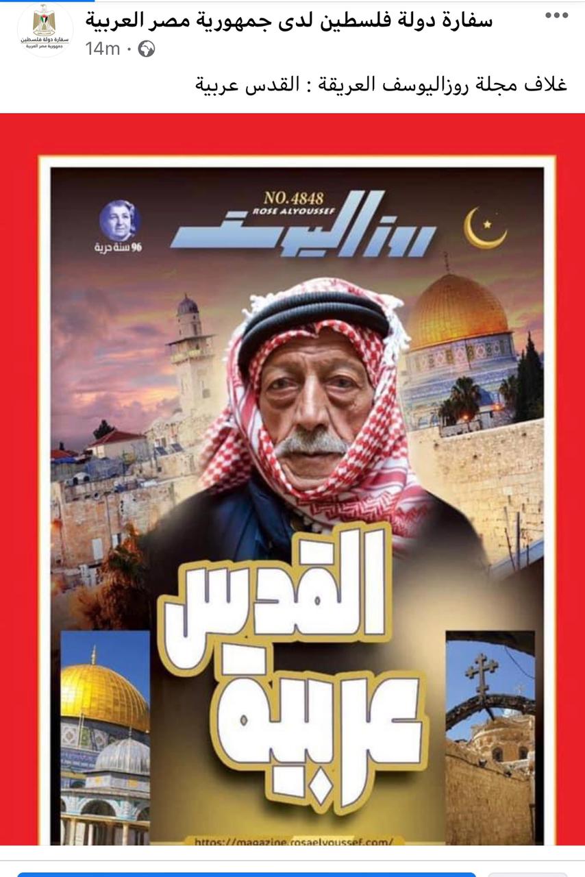 السفارة الفلسطينية بالقاهرة تبرز غلاف عدد مجلة روز اليوسف الداعم للقدس