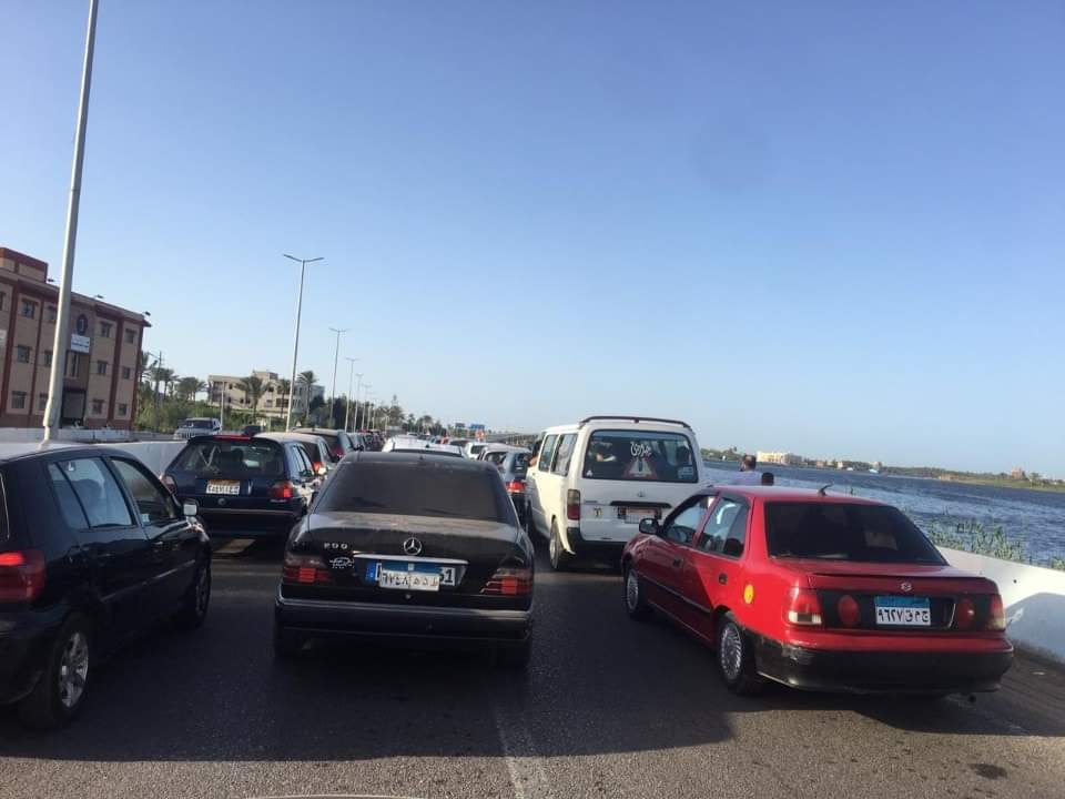 زحام وتكدس للسيارات بطول طريق "دمياط_ رأس البر"