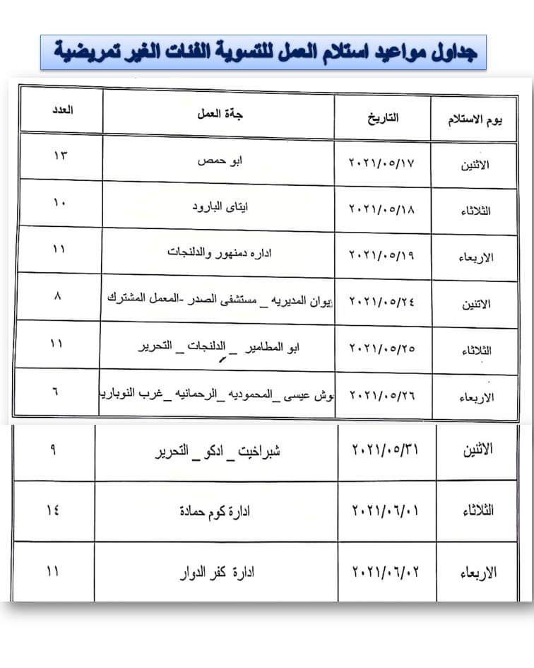 ننشر مواعيد استلام العمل لتسوية فئات المهن الطبية وغير التمريضية بالبحيرة