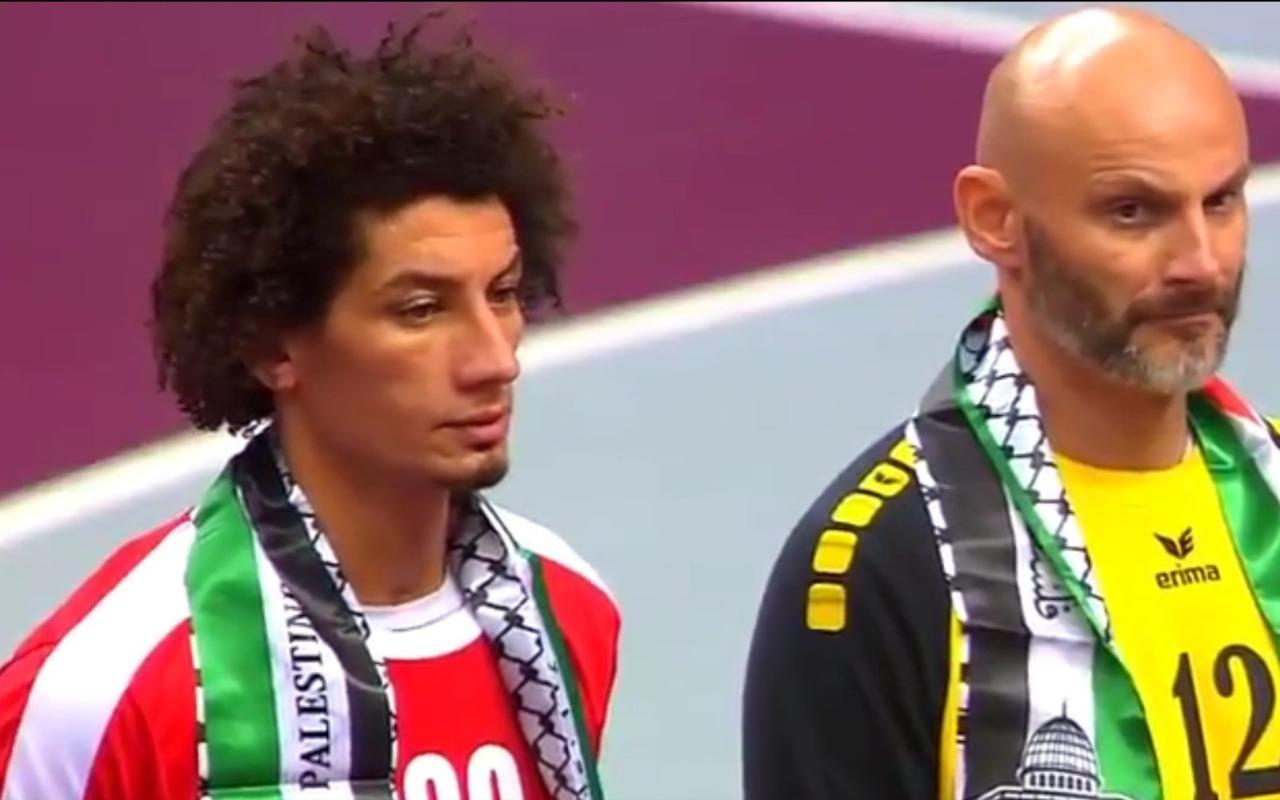 علي زين يرتدي علم فلسطين خلال تتويج العربي بطلًا لكأس قطر لكرة اليد (صورة)