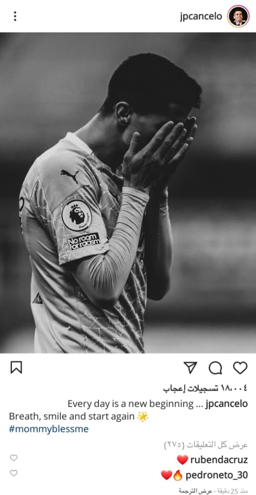 وكتب كانسيلو عبر موقع الصور والفيديوهات القصيرة "انستجرام"، اليوم الأربعاء: "كل يوم هو بداية جديدة.. تنفس وابتسم وابدأ من جديد".