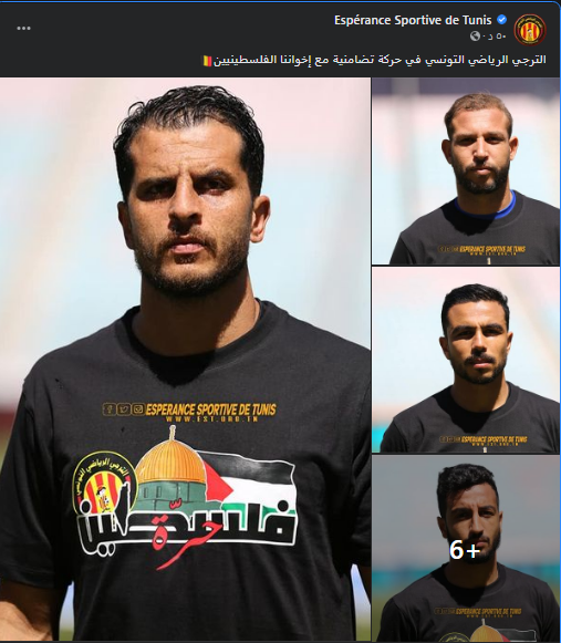 ونشرت الصحفة الرسمية للترجي التونسي، عدة صورة للاعبي الفريق وهم يرتدون قميص دعم فلسطين وعلقت عليها: " الترجي الرياضي التونسي في حركة تضامنية مع إخواننا الفلسطينيين".