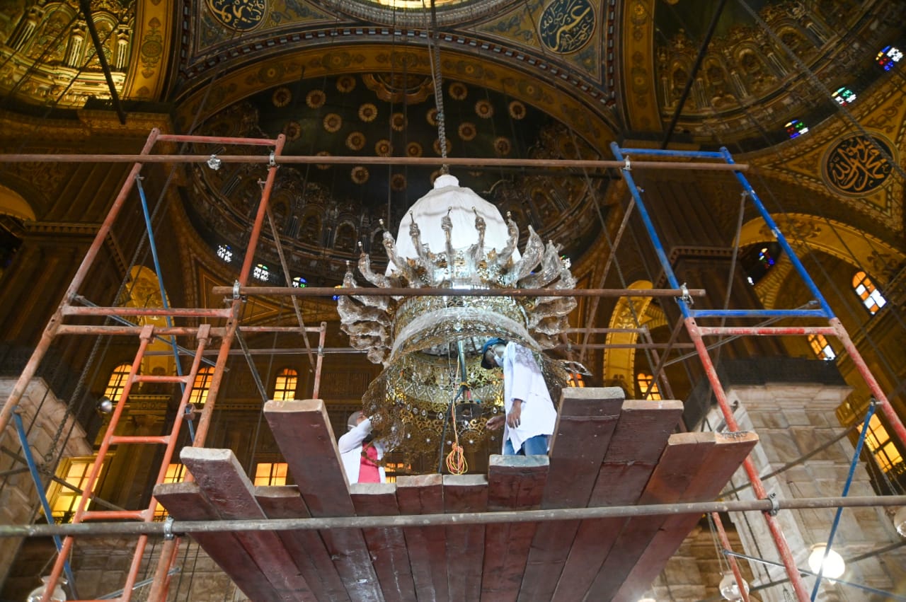 وأكد الدكتور أسامة طلعت، على أن نسبة إنجاز الأعمال بالنجفة وصل إلى 60%، حيث يبلغ عرض النجفة بالكامل خمسة أمتار ونصف، وارتفاعها ثلاثة أمتار، وهي محاطة بمجموعة من الإضاءات في شكل دائري وترتفع عن أرض المسجد بخمسة أمتار، وسوف يتم الانتهاء منها قريبا.