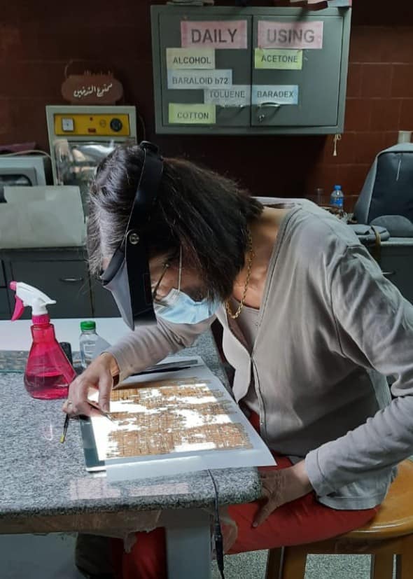 وعرض المتحف مشاركة المرممة “إيف مينى” وهي متخصصة في ترميم البردي، وما توصلت إليه في أعمال ترميم قطع البردي المُكتشفة بوادي جرف.