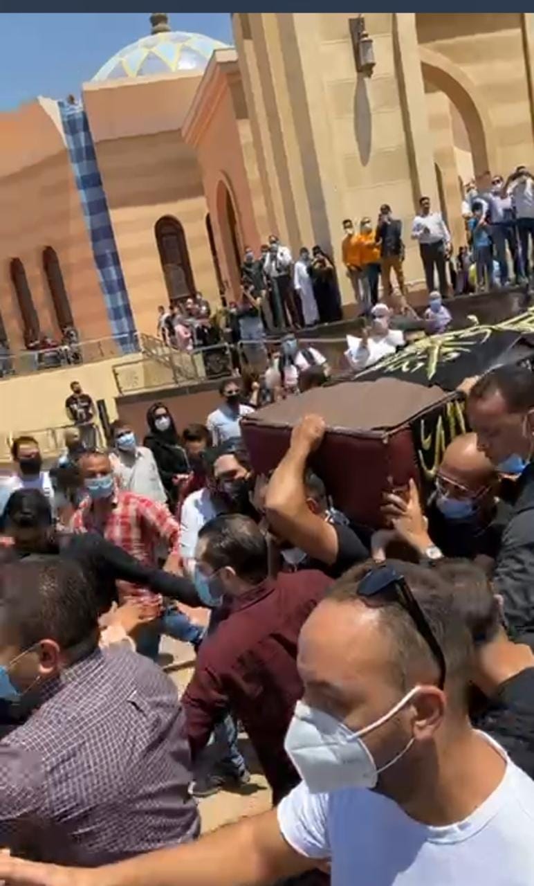 حسن الرداد يتقدم حاملي نعش سمير غانم وإيمي ودنيا بجانب والدهم في عربة نقل الموتى