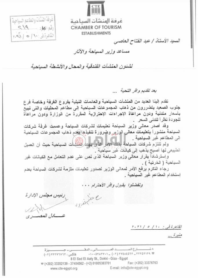 وكان "القاهرة 24" حصل على الشكوى الرسمية من مصادر له داخل وزارة السياحة والآثار والتي جاءت كالتالي: