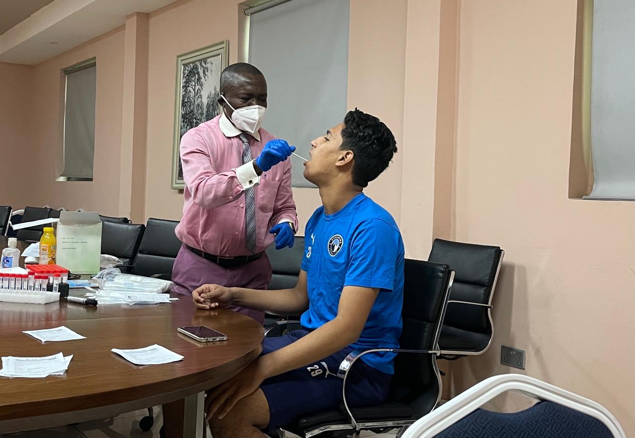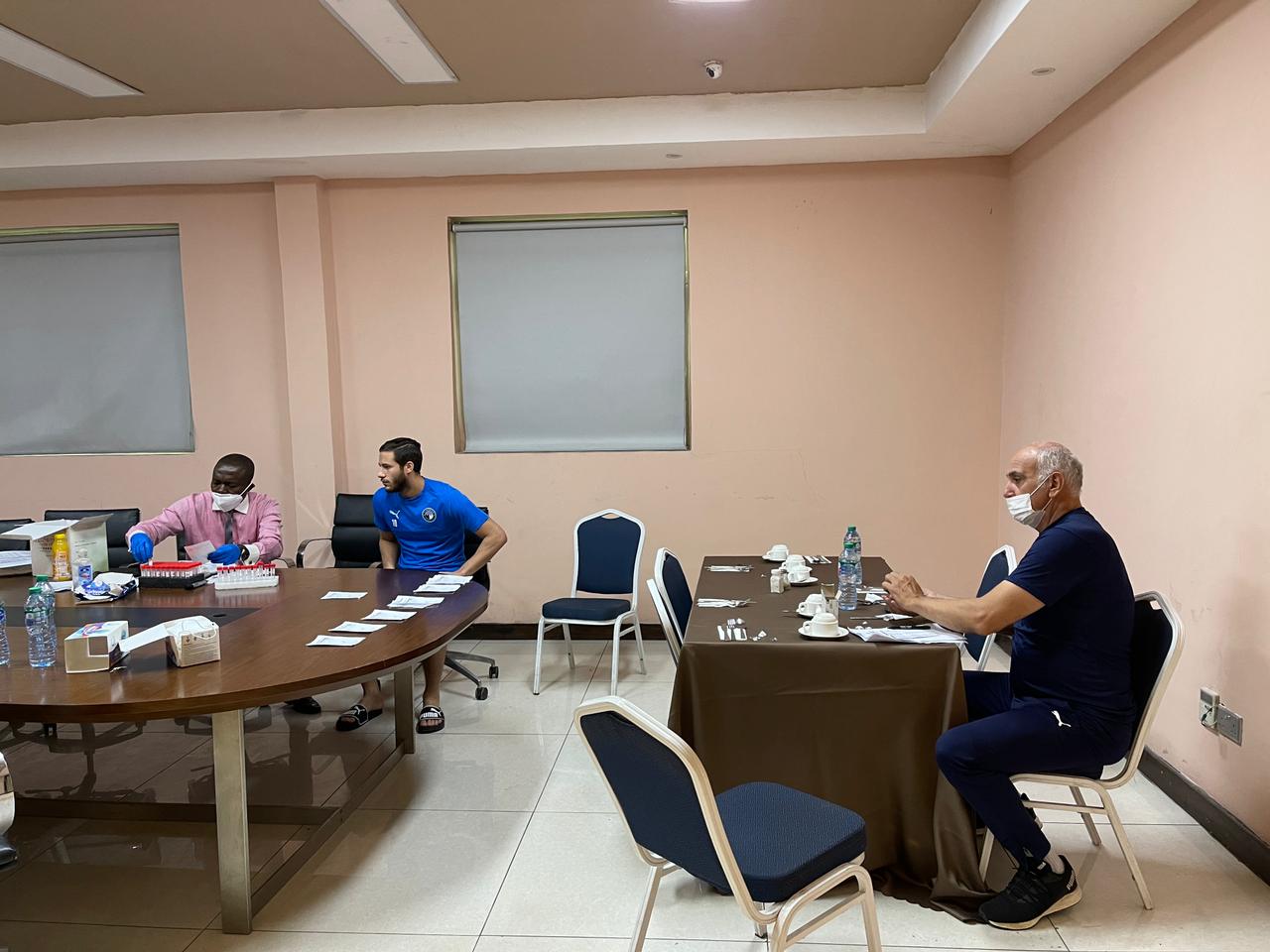 وأشرف الجهاز الطبي والإداري على جميع الأمور الخاصة بالمسحة للبعثة والاطمئنان على كافة التفاصيل الأخرى قبل خوض المران المحدد له السادسة مساء اليوم على استاد أنيمبا الدولي في مدينة آبا.
