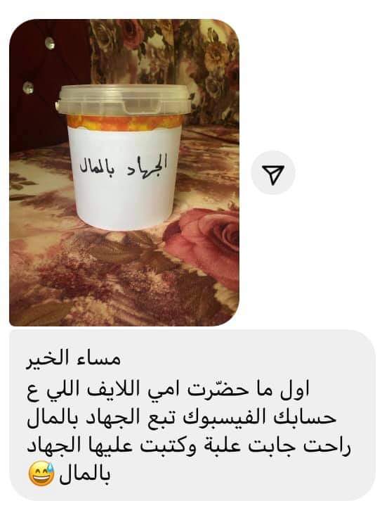 وأشار شخص آخر إلى أن والدته بمجرد سماعها عن فكرة التحدي أتت بـ"علبة" ولصقت عليها ورقة مكتوب عليها "الجهاد بالمال".