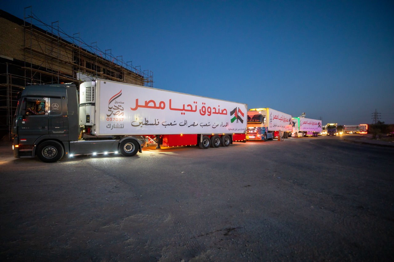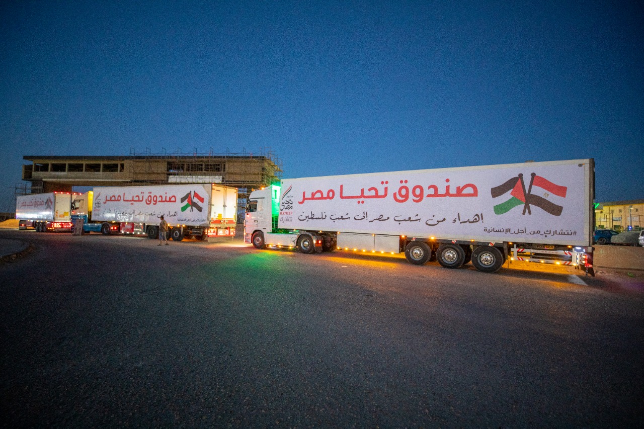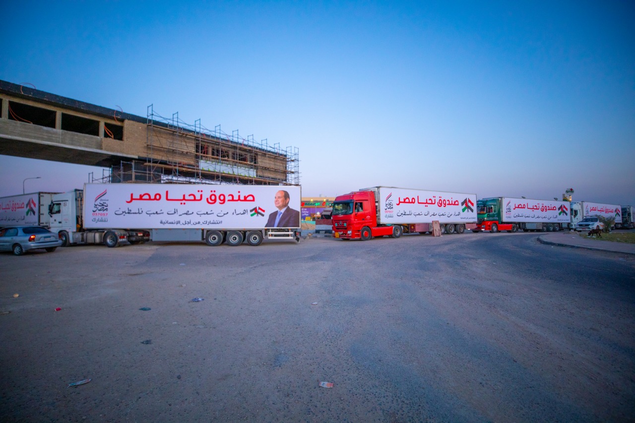 قافلة صندوق تحيا مصر تعبر نفق الشهيد أحمد حمدي في الطريق لقطاع غزة (صور)