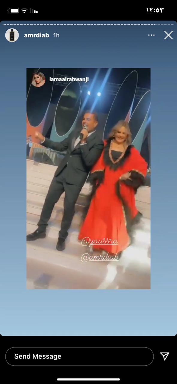 عمرو دياب نشر استورى عبر موقع تبادل الصور" انستجرام" صور ومقاطع فيديو لعدد من الفنانين المقربين من الراحل سمير غانم والفنانة دلال عبد العزيز، وهم فى وصلات رقص وغناء أبرزهم الفنانة إلهام شاهين، وليلى علوي وغيرهم من الوسط الفنى ممن شاركوا فى الجنازة.