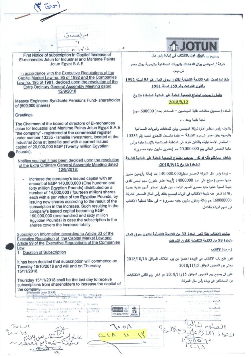 فيما تم مخاطبة نقابة المهندسين من شركة المهندسين يوتن في 13 أكتوبر 2018 يفيد بأن حصة النقابة 600 ألف سهم وعودة حصة النقابة إلى 30% بموجب اجتماع الجمعية العمومية غير العادية المنعقدة في 12 سبتمبر 2018 والذي تم بعد تولي المجلس الحالي مسؤولياته بنحو 5 أشهر.