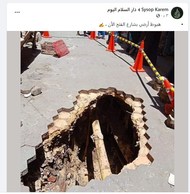 هبوط أرضي بشارع الفتح بمنطقة دار السلام