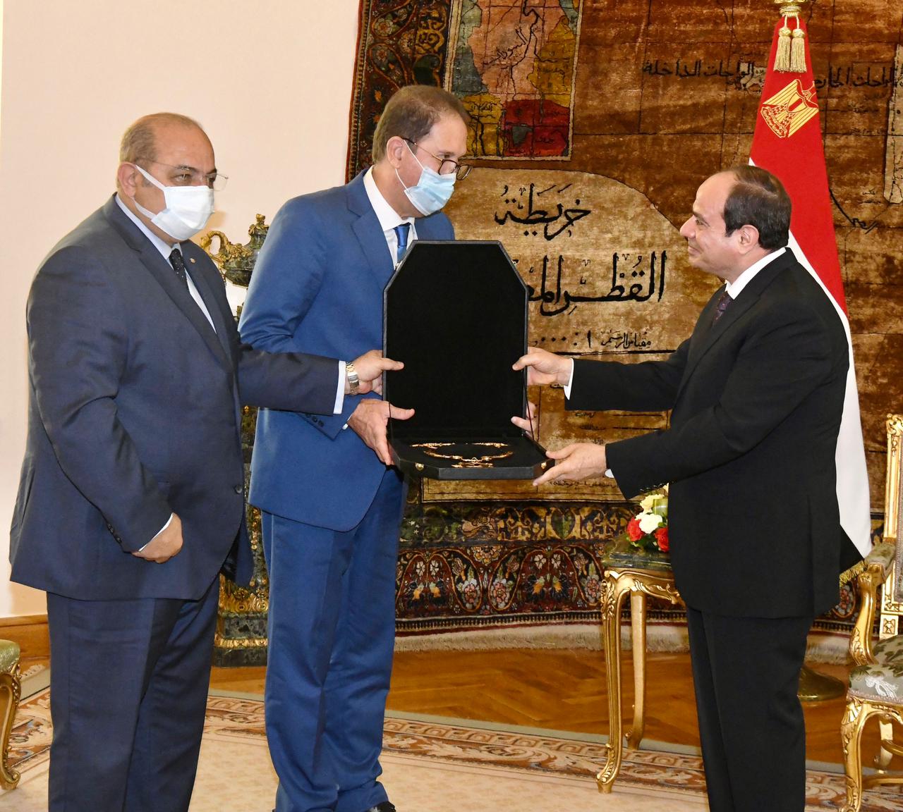 استقبل الرئيس عبد الفتاح السيسي، اليوم، مصطفى براف، رئيس اتحاد اللجان الأولمبية الوطنية الإفريقية "الأنوكا"، وذلك بحضور الدكتور أشرف صبحي وزير الشباب والرياضة، وهشام حطب رئيس اللجنة الأولمبية المصرية.
