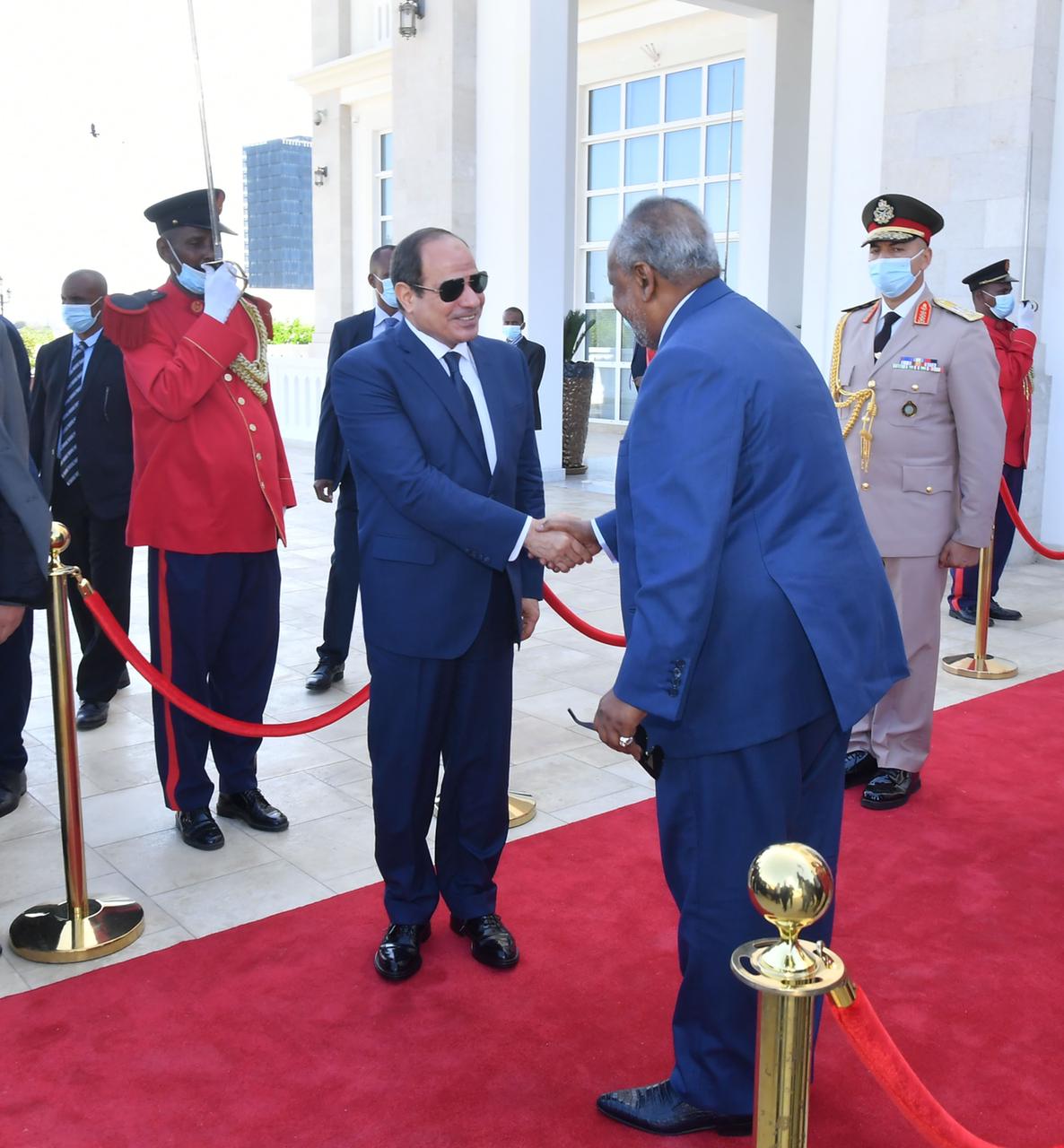 وكان الرئيس عبد الفتاح السيسي، وصل صباح اليوم الخميس، إلى جيبوتي، وكان في استقباله نظيره إسماعيل عُمر جيلة، فضلًا عن عدد كبير من كِبار المسئولين الجيبوتيين، حيث أقيمت مراسم الاستقبال الرسمي وعزف السلامين الوطنيين واستعراض حرس الشرف.