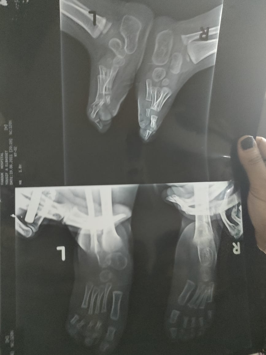 والتقى “القاهرة 24”، بوالد الطفل ويدعى عبد الباسط رمضان، وقال: “بعد ولادة طفلي مباشرة كان يعاني من عيب خلقي واعوجاج في القدمين، فتوجهنا به لأحد الأطباء، وتم إجراء الأشعة وتبين أنه يعاني من عيب خلقي وهو ضمور في القدمين، بالإضافة إلى وجود ثقبين بالقلب”.
