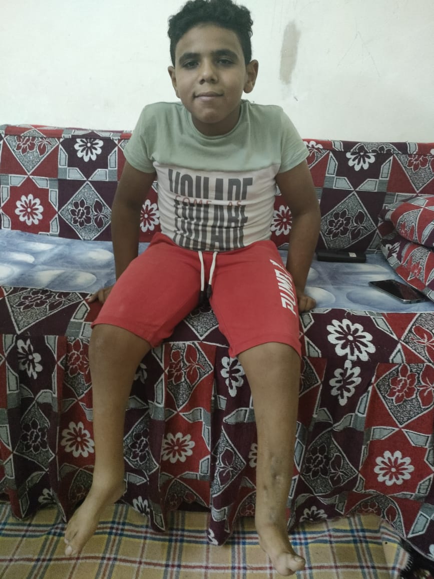 يعاني الطفل يوسف عبد الباسط الذي يبلغ 11 عاما بمنطقة الملقة بدار السلام في محافظة القاهرة، منذ ولادته في عام 2009 من عيب خلقي “ضمور في القدمين”، مصحوبا بعدم وجود النخاع الشكوى للطفل، بالإضافة إلى ثقبين في القلب، فلم يترك والد الطفل ابنه وقام بعرضه على الأطباء، والذين أكدوا أنه يحتاج إلى السفر خارج مصر لإجراء عمليه تصل تكليفها إلى أكثر من 500 ألف جنيه.