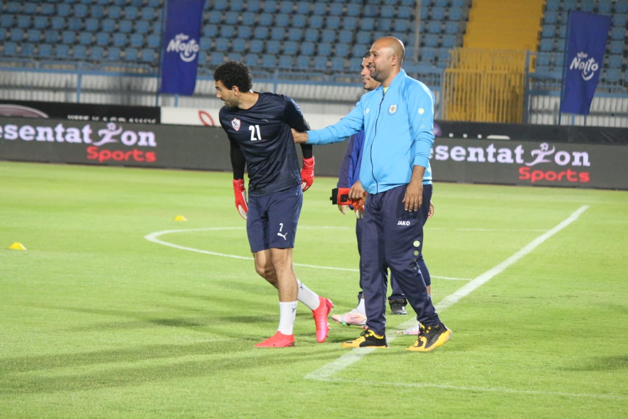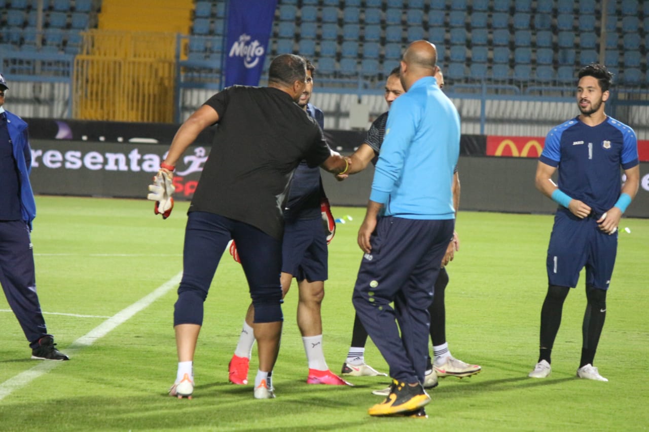 عواد يصافح حراس الإسماعيلي قبل انطلاق المباراة