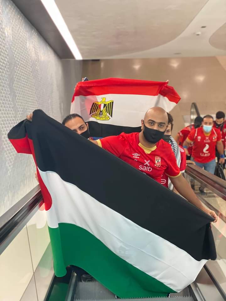 حرصت جماهير الأهلي المتوافدة على ملعب جاسم بن حمد بالعاصمة القطرية الدوحة، على دعم القضية الفلسطينية بعد العنف الذي تعرض إليه الشعب الفلسطيني على يد قوات جيش الاحتلال الإسرائيلي.