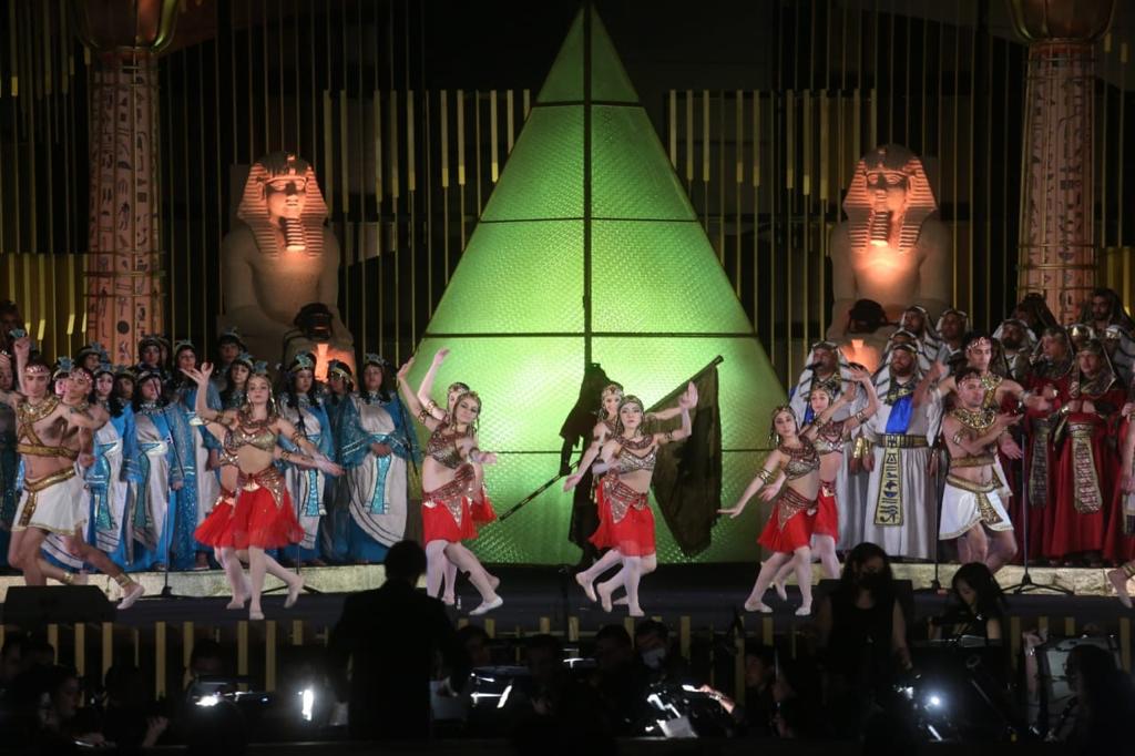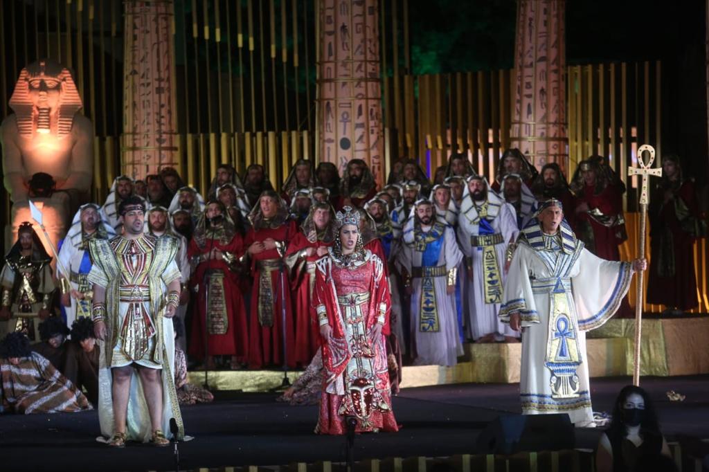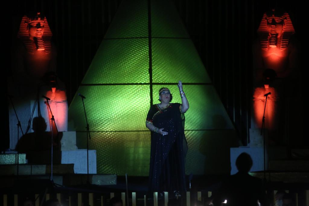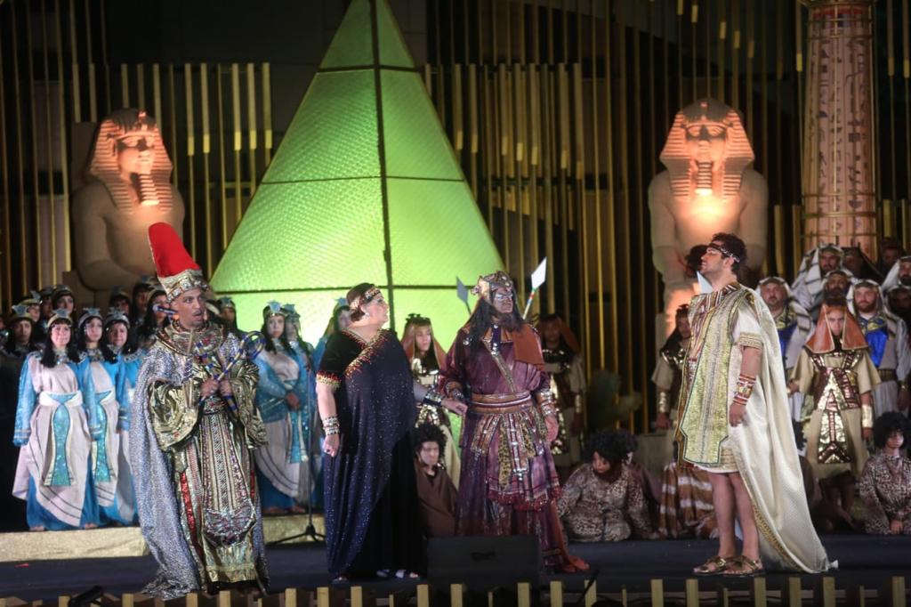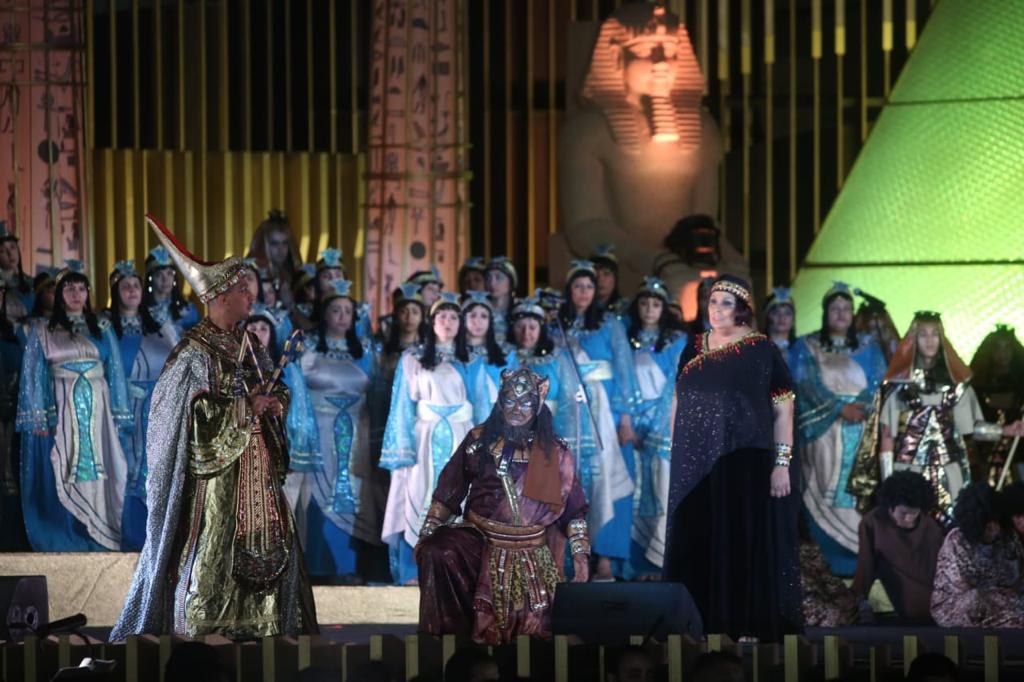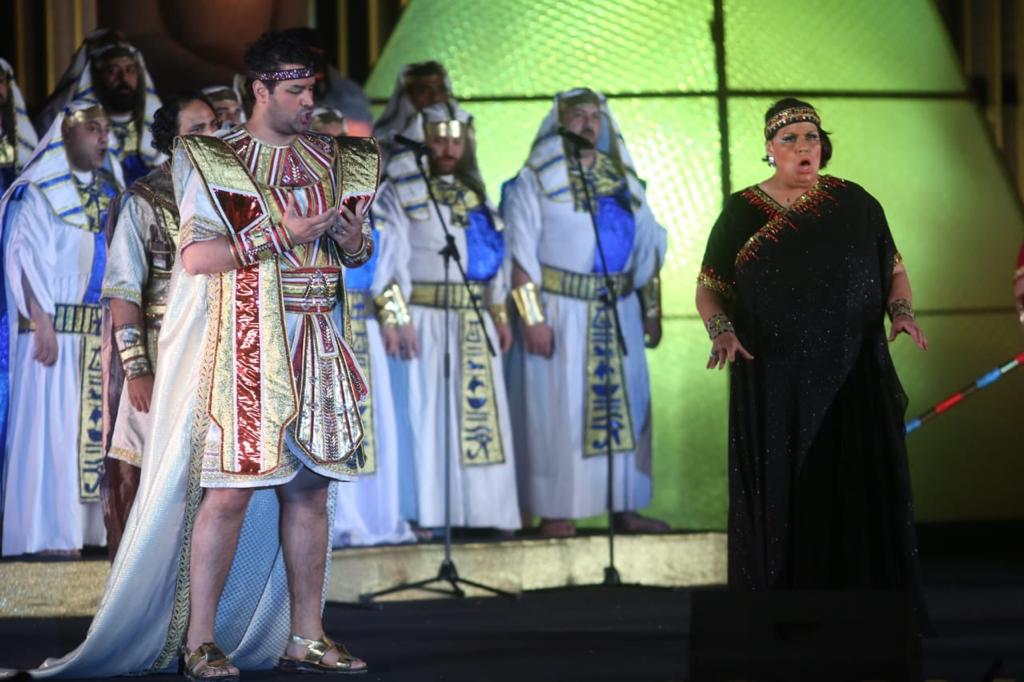 جاء العرض العالمي (أوبرا عايدة) والذي وضع مُوسيقاه فيردي منذ أكثر من قرن ونصف من الزمان، مُتكاملًا للعناصر الفنية والتي تؤكد قدرة وتميز الفنانين المصريين في أداء الشخصيات بِحرفية واتقان وهم (السوبرانو إيمان مصطفي، المدير الفني لفرقة أوبرا القاهرة في دور عايدة، الباريتون عماد عادل في دور أموناصرو، الميتزوسوبر جولي فيظي بالتبادل مع أمينة خيرت في دور أمنيرس، الباص رضا الوكيل في دور رامفيس، أسامة جمال في دور الملك، دينا فاروق في دور كبير الكهنة، التينور أسامة علي في دور الرسول والتينور الإيطالي داريو دي فييتري في دور راداميس).