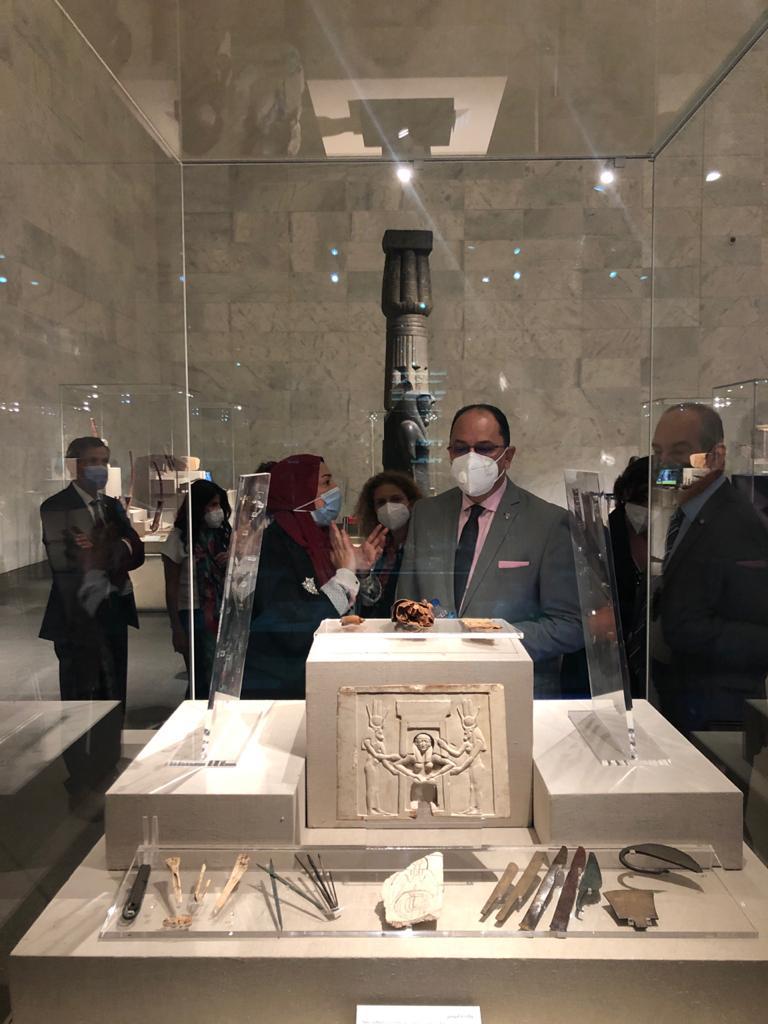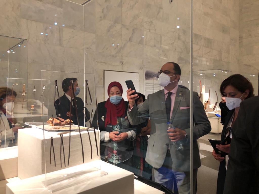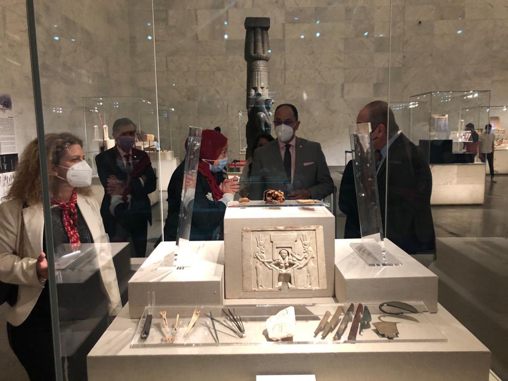 وتولت الدكتورة عبير أبو المجد الأثرية بالمتحف، الجولة داخل قاعة العرض المركزي وقاعة المومياوات، وقامت بالشرح الأثري لكافة المقتنيات المعروضة، بالإضافة إلى مراحل إنشاء المتحف وافتتاح قاعاته.