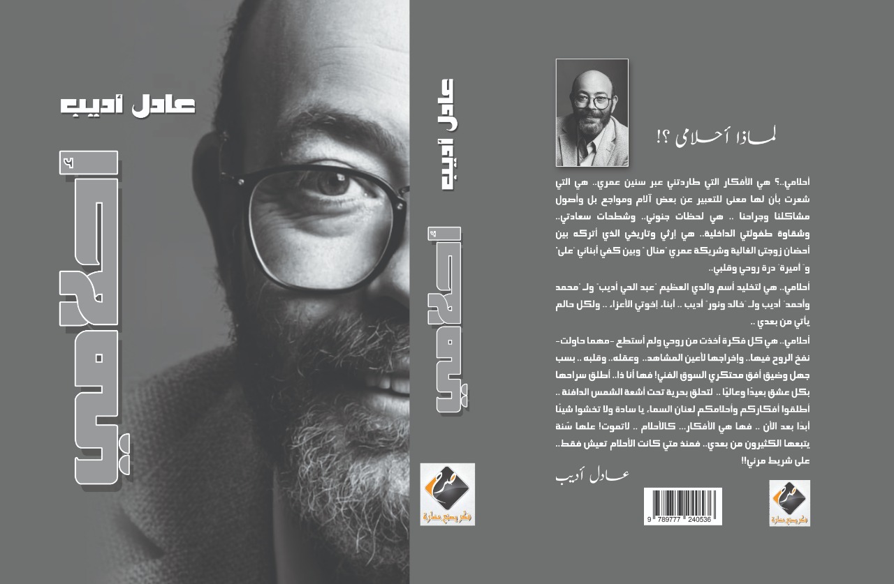 كتاب "أحلامي" عبارة عن أكثر من 21 معالجة درامية تفصيلية لأفلام ومسلسلات ألفها عبر 25 عاما من حياته الفنية، أما "قلوب الضالين في طوائف الحشاشين" فيقول عنه أديب إنه حلم عمره مقسم على (6) أجزاء درامية عن طائفة الحشاشين وتاريخهم.