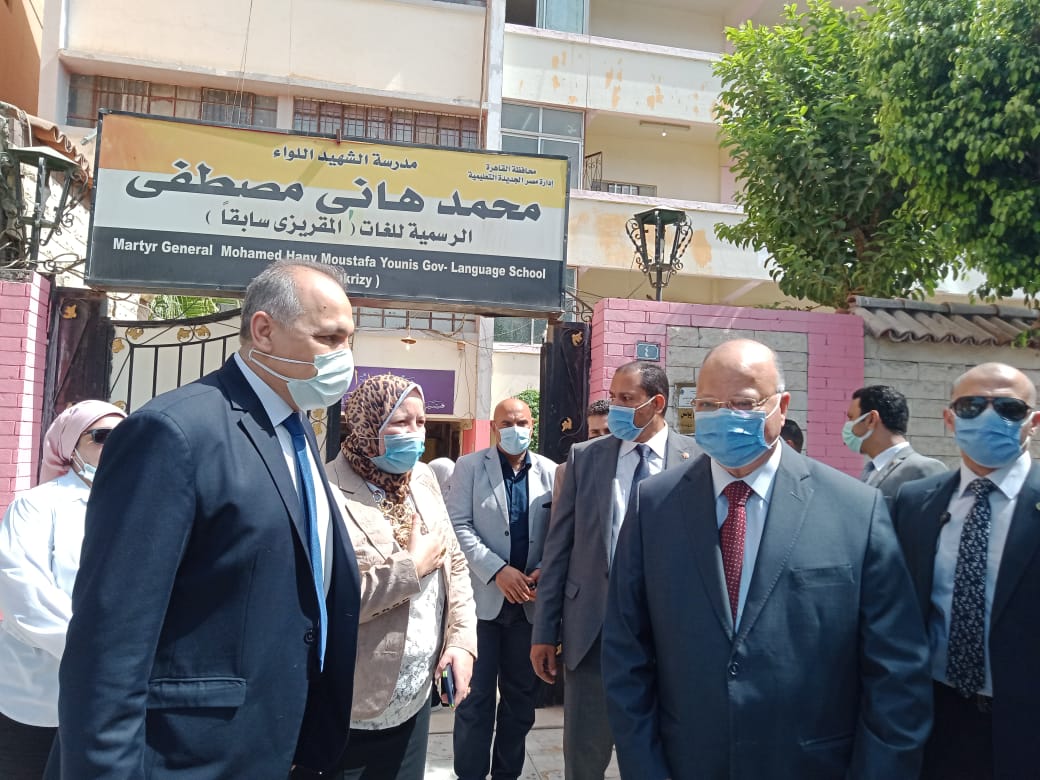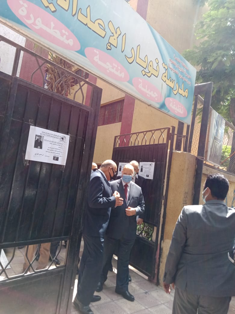تفقد اللواء خالد عبد العال، محافظ القاهرة، بدء امتحانات الترم الثاني للشهادة الإعدادية للعام الدراسي 2020 - 2021 بمدرستي الشهيد محمد هاني مصطفى الرسمية للغات “المقريزي سابقا” بإدارة مصر الجديدة التعليمية، ومدرسة نوبار الحديثة بنات بعابدين؛ للاطمئنان على سير الامتحانات دون أي عقبات، حيث يؤدي 158796 طالب وطالبة امتحانات الشهادة الإعدادية “العام والمهنية والرياضية والمكفوفين وضعاف السمع”، في 751 لجنة كما يؤدي طالبين الامتحان بلجنة بمستشفى57375.
