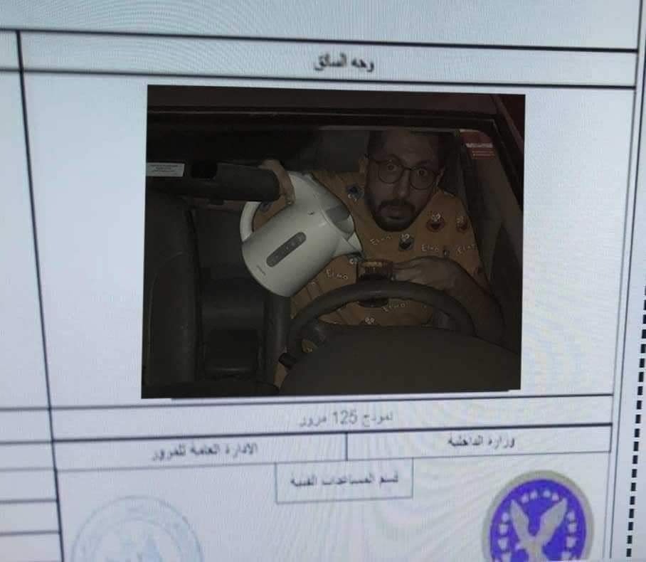 وأضاف المصدر بأن رواد التواصل تداولوا صورة أخرى منها مخالفة لشاب يحمل “كاتيل" ويقوم بشرب الشاي، داخل سيارته، لافتًا إلى أن الصور وجدت رواجًا مع وجود شعار وزارة الداخلية وهذا الأمر جعلها تنتشر وتبدو وكأنها حقيقية، بجانب ظهور نموذج 125 مرور، لكنها غير حقيقية.