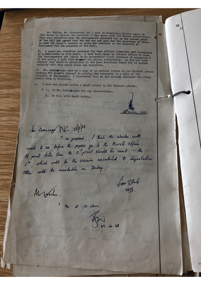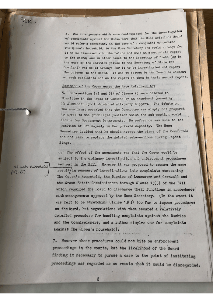 وقالت الصحيفة إن تلك الوثائق ستعيد إشعال الجدل مرة أخرى حول التمييز العرقي في العائلة المالكة البريطانية، مضيفة أنه تم اكتشاف الأوراق في الأرشيف الوطني كجزء من تحقيق أجرته "الجارديان" حول استخدام العائلة المالكة لإجراء برلماني غامض، يُعرف باسم موافقة الملكة، للتأثير سرا على محتوى القوانين البريطانية.