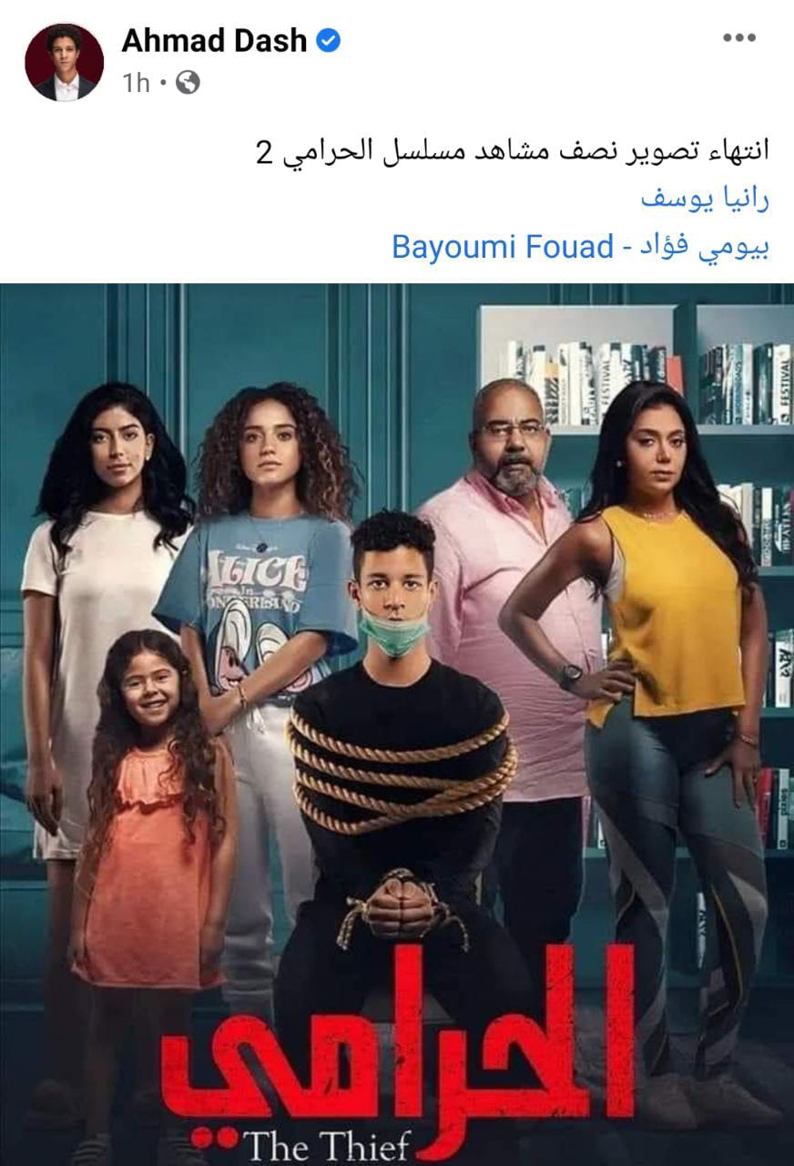 أعلن الفنان الشاب أحمد داش، انتهاء تصوير نصف مشاهد الجزء الثاني من مُسلسل "الحرامي"، بطولة الفنانة رانيا يوسف والفنان بيومي فؤاد، والمقرر طرحه قريبًا.