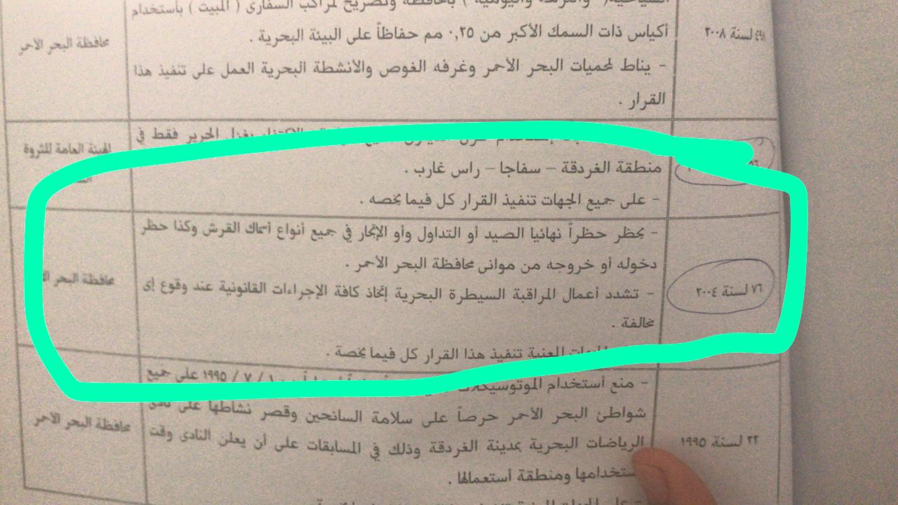 على الرغم من وجود قرار يحمل رقم 76 لسنة 2004 الصادر عن محافظة البحر الأحمر لحماية البيئة ينص أنه “يُحظر حظرًا نهائيًا الصيد أو التداول أو الاتجار في جميع أنواع أسماك القرش، وكذا حظر دخوله أو خروجه من موانئ المحافظة”، إلا أن هذا القرار لم يُفعل بحسب ما أكدته مريم الصادق، مسؤولة التواصل والتعليم البيئي بجمعية المحافظة على البيئة بالبحر الأحمر “هيبكا”، في تصريحات سابقة لـ"القاهرة 24".