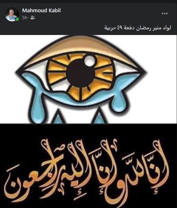 وحرص الممثل محمود قابيل على نعي والد أحمد منير، وكتب عبر حسابه بموقع التواصل الاجتماعي “فيس بوك”: "لواء منير رمضان دفعة 49 حربية.. إنا لله وإنا إليه راجعون".