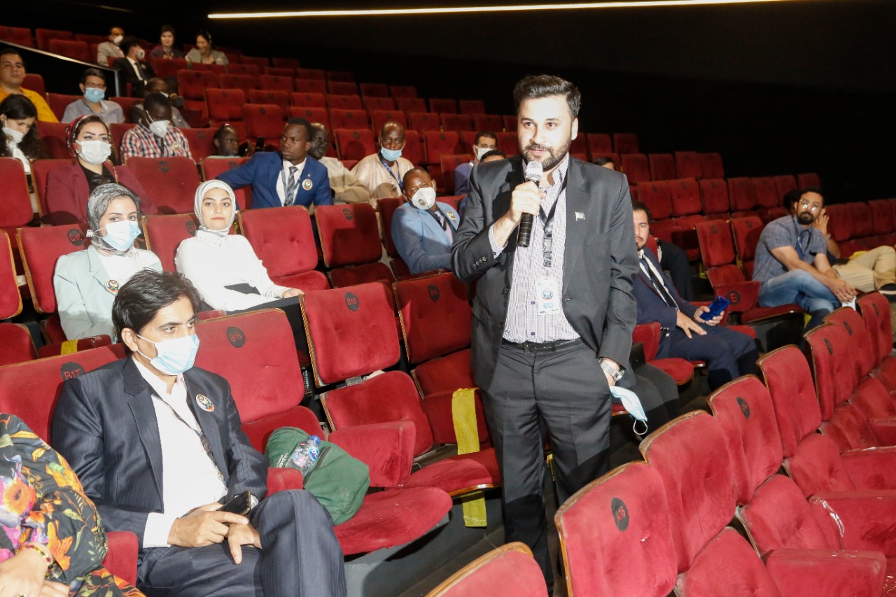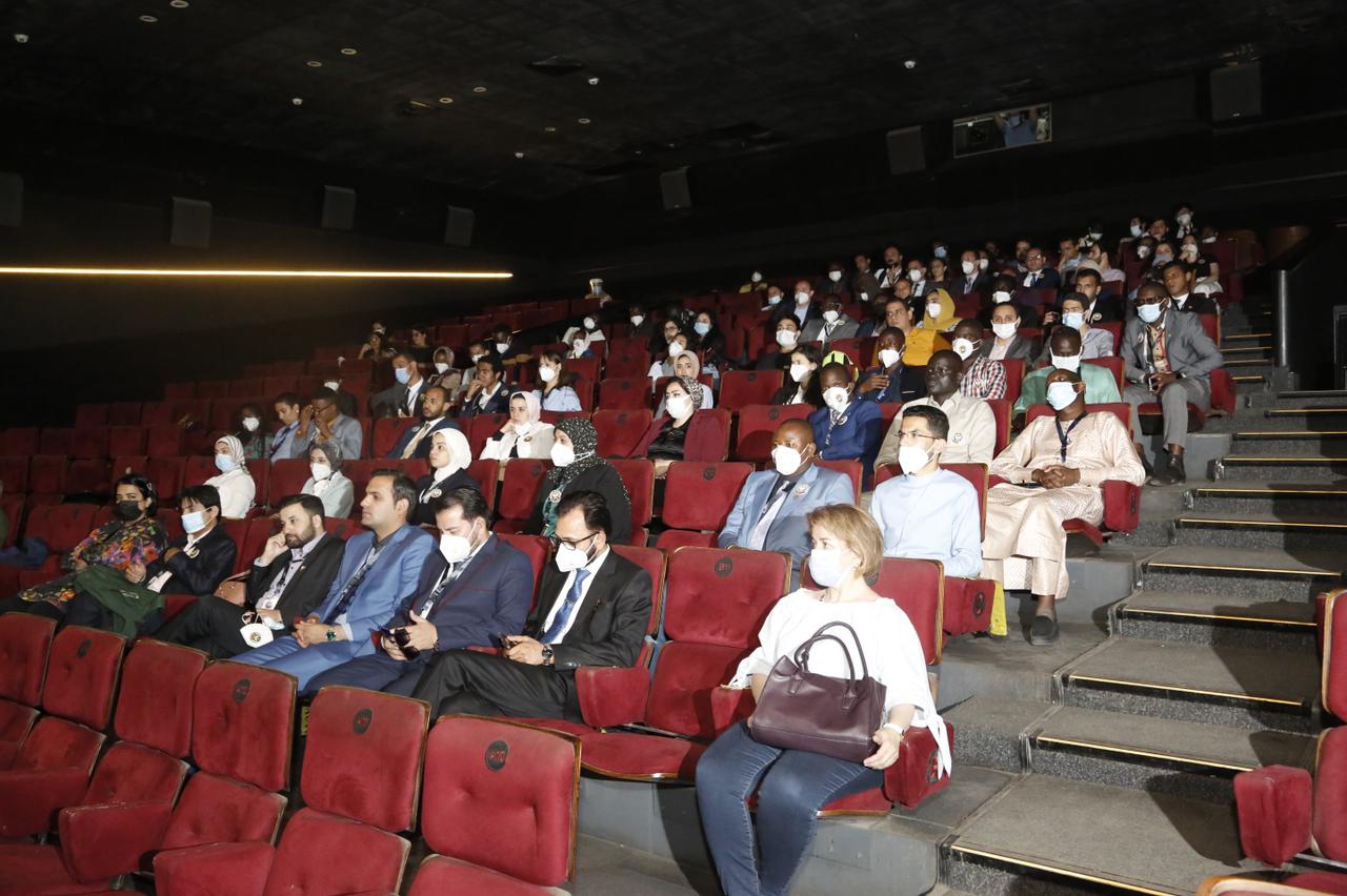 قدمت الاحتفالية الفنانة ياسمين الهواري، التي رحبت بالوفود واعطتهم لمحة سريعة عن المهرجان وانشطته واستعرضت برنامج الاحتفال، الذي عرض خلاله نادي السينما الأفريقية بالتعاون مع "زاوية" فيلم "الأرض" النسخة المرممة مترجمة بالإنجليزية للوفود المشاركة، وكذلك تم عرض الفيلم التسجيلي "أنشودة الوداع" حول رحيل الزعيم جمال عبد الناصر، الذي نال إعجاب وإبهار الحضور لما شاهدوه من مشاهد حقيقية لجنازة الزعيم الراحل جمال عبد الناصر.