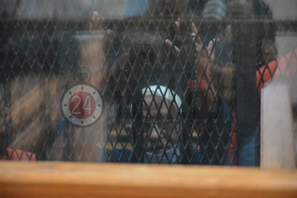وأودعت قوات الأمن المتهمين من قيادات الإخوان قفص الاتهام الزجاجي داخل قاعة المحاكمة بمجمع محاكم طرة، وذلك قبل بدء أولى جلسات محاكمتهم في أحداث المنصة.