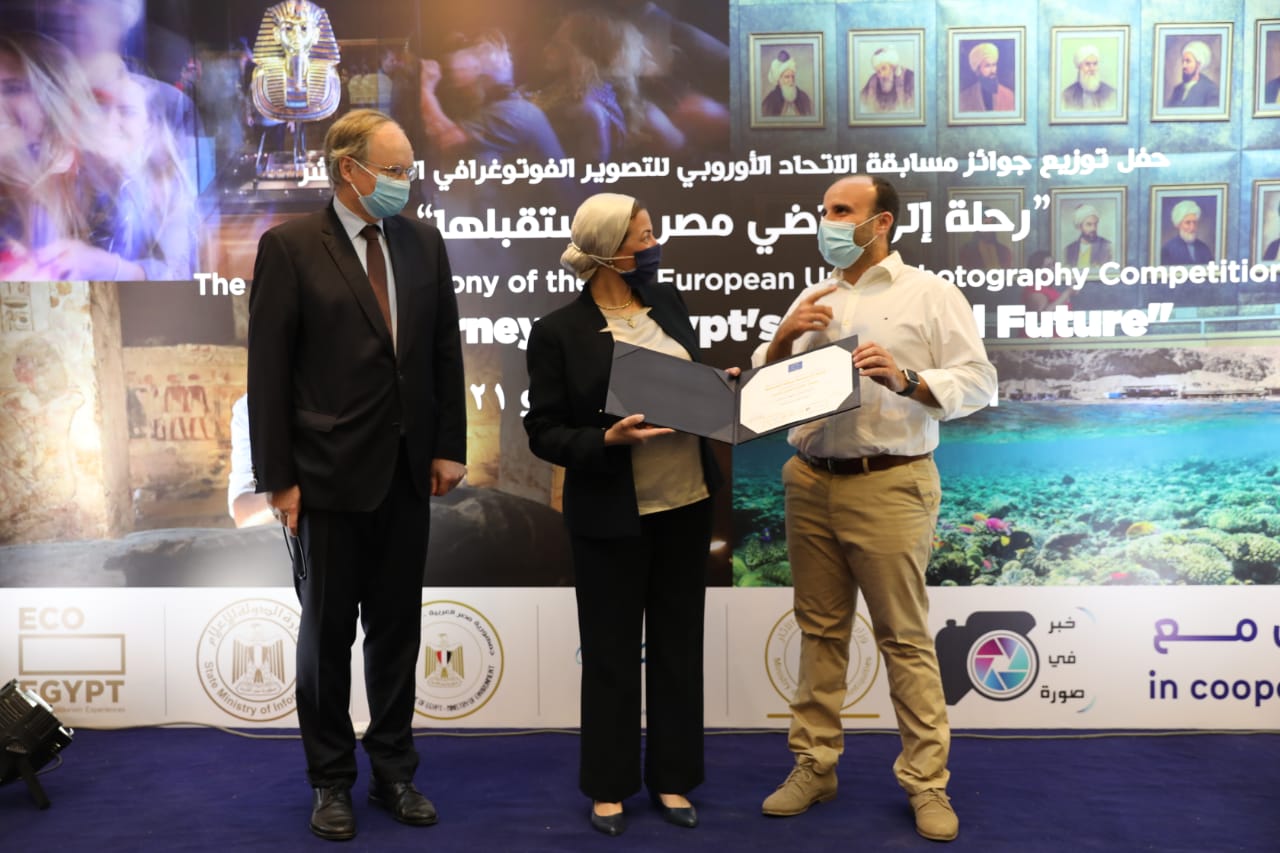 شهدت الدكتورة ياسمين فؤاد وزيرة البيئة حفل توزيع جوائز مسابقة الاتحاد الأوروبي للتصوير الفوتوغرافي في نسختها الثالثة عشرة موضوعها هذا العام "رحلة إلى ماضي مصر ومستقبلها"، والتي تنظم بالتعاون بين ووزارة البيئة ممثلة في حملة إيكو إيجيبت، وزارة السياحة والآثار ووزارة الدولة للإعلام بحضور سفير الاتحاد الأوروبي كريستيان برجر، والدكتور أحمد غنيم مساعد وزير السياحة والآثار، الرئيس التنفيذي لهيئة المتحف القومي للحضارة والأستاذ حسام محسن مساعد وزير الدولة للإعلام، والسفير بدر عبد العاطي مساعد وزير الخارجية للشؤون الأوروبية والسفير رؤوف سعد رئيس المكتب الوطني لتنفيذ اتفاقية الشراكة بين الاتحاد الأوروبي ومصر وعدد من سفراء دول الاتحاد الأوروبي ذلك بمتحف الحضارة بالفسطاط.