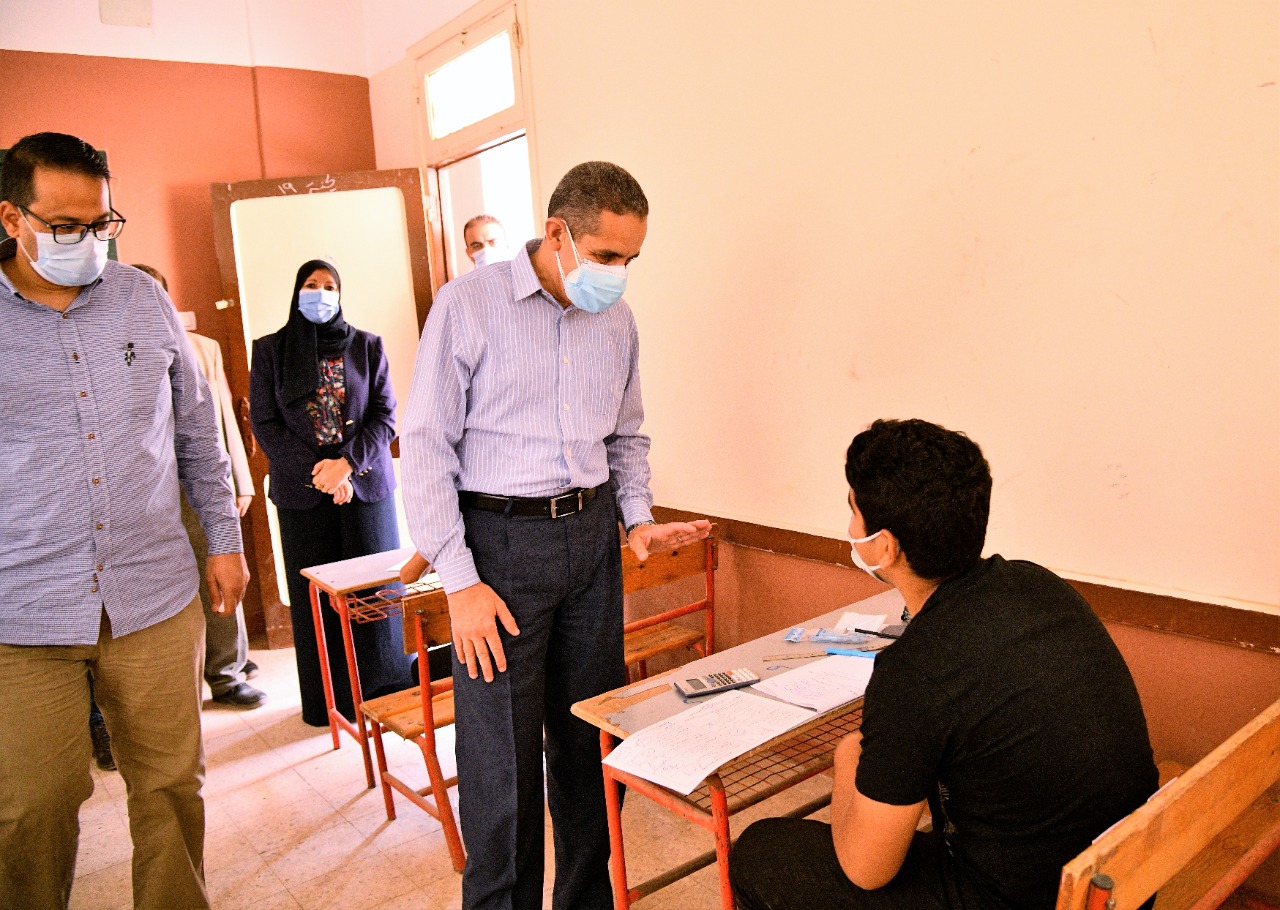 واطمأن المحافظ، خلال جولته في المدارس، على عدم وجود أي شكاوى من الطلاب، إلى جانب التأكد من تطبيق كافة الإجراءات الاحترازية للوقاية من فيروس كورونا المستجد من توفير الكحول، والكمامات، وتحقيق التباعد باللجان، والتزام المراقبين بهذه الإجراءات.