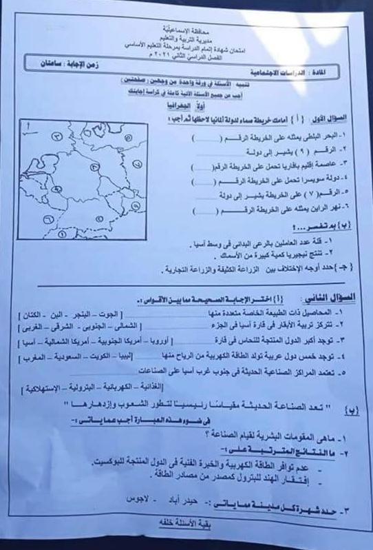 بعد تسريبه.. ننشر امتحان الدراسات الاجتماعية للشهادة الإعدادية في الإسماعيلية