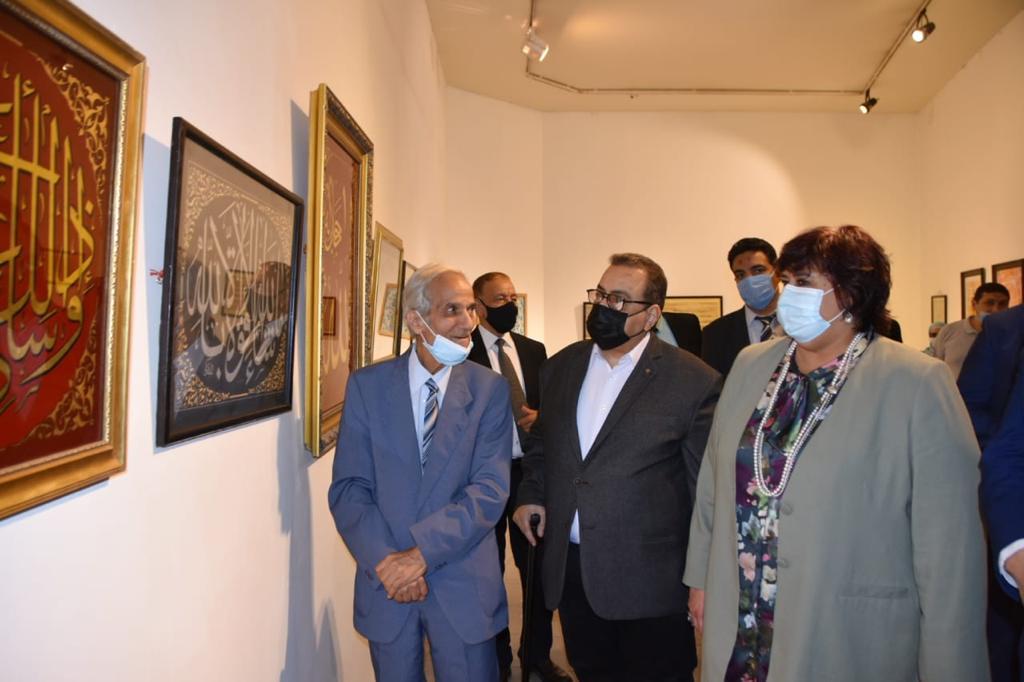 بحضور الدكتور فتحي عبد الوهاب، رئيس صندوق التنمية الثقافية، الدكتور مجدى صابر رئيس دار الأوبرا المصرية، الدكتور خالد سرور، رئيس قطاع الفنون التشكيلية، الفنان محمد بغدادي قوميسير عام الملتقي، الفنان مسعد خضير البورسعيدي، نقيب الخطاطين، فوزي أبو فارس الملحق الثقافي الأردني بالقاهرة.