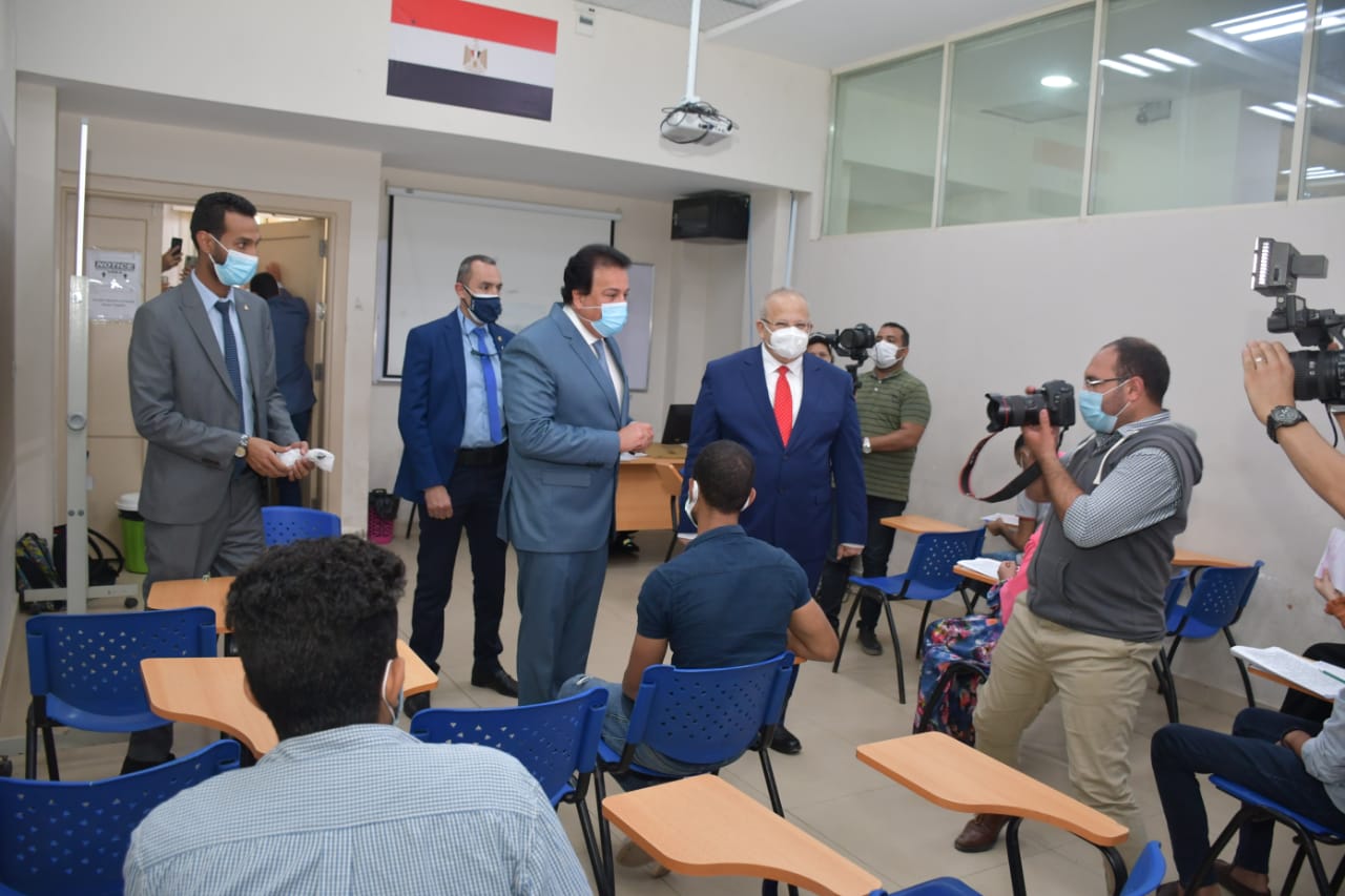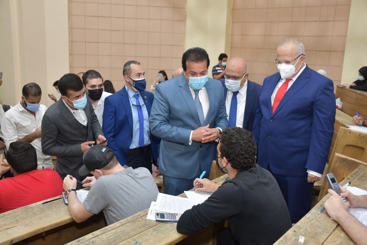 وتفقد الوزير ورئيس الجامعة أعمال الامتحانات، واطمأن الوزير على حسن سير أعمال الامتحانات، والالتزام بتطبيق كافة الإجراءات الاحترازية والوقائية بلجان الامتحانات للوقاية من فيروس كورونا، مشيدًا بدور إدارة الجامعة في تحقيق الانضباط والانتظام أثناء سير الامتحانات، وتوفير كافة السبل للطلاب لأداء امتحاناتهم.