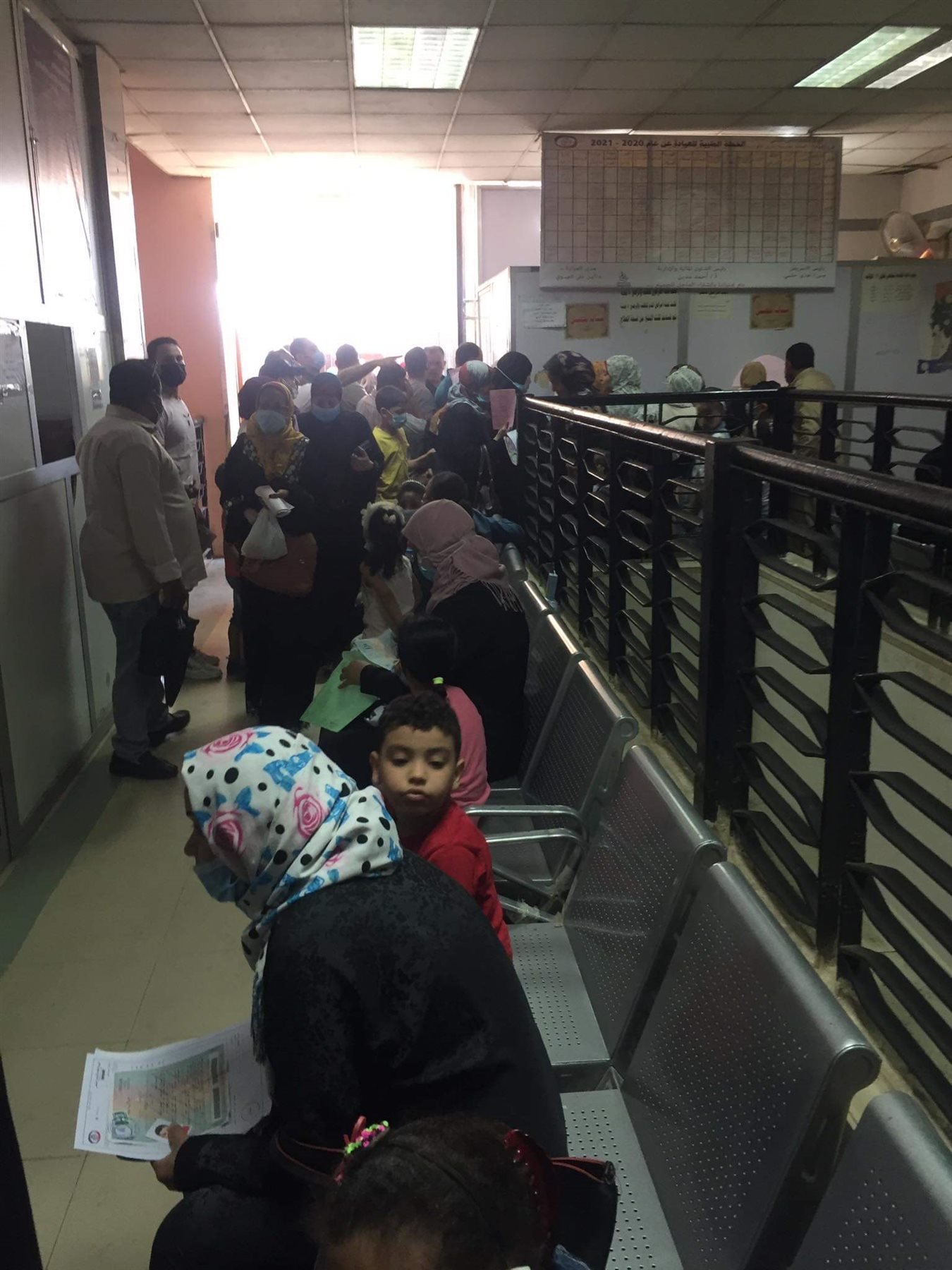 زحام داخل التأمين الصحي بالمنوفية بسبب تقديمات المدارس رغم تحذيرات كورونا (صور)