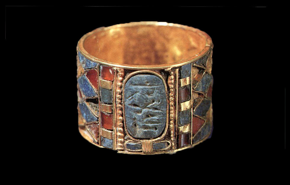 وأوضح المصدر أن خاتم بسوسنيس الأول مصنوع من الذهب ومطعم بالعقيق واللازورد والفلسبار الأخضر، وتم اكتشافه في تانيس، بمحافظة الشرقية، ويعود إلى الأسرة الحادية والعشرين، عصر الانتقال الثالث.