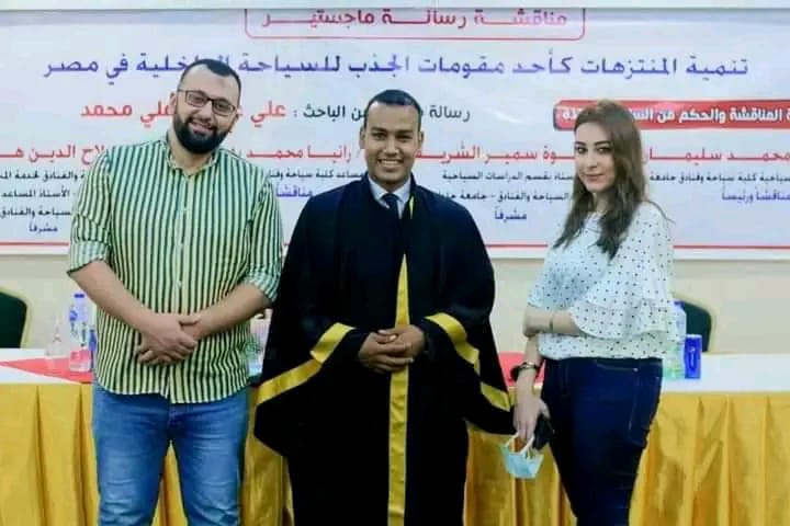 منحت اللجنة العلمية المشكلة من كلية السياحة والفنادق بجامعة حلوان، درجة الماجستير مع مرتبة الشرف للباحث علي عبد الله، وذلك بعد مناقشة رسالته العلمية التي جاءت بعنوان :"تنمية المتنزهات كأحد مقومات الجذب للسياحة الداخلية في مصر".