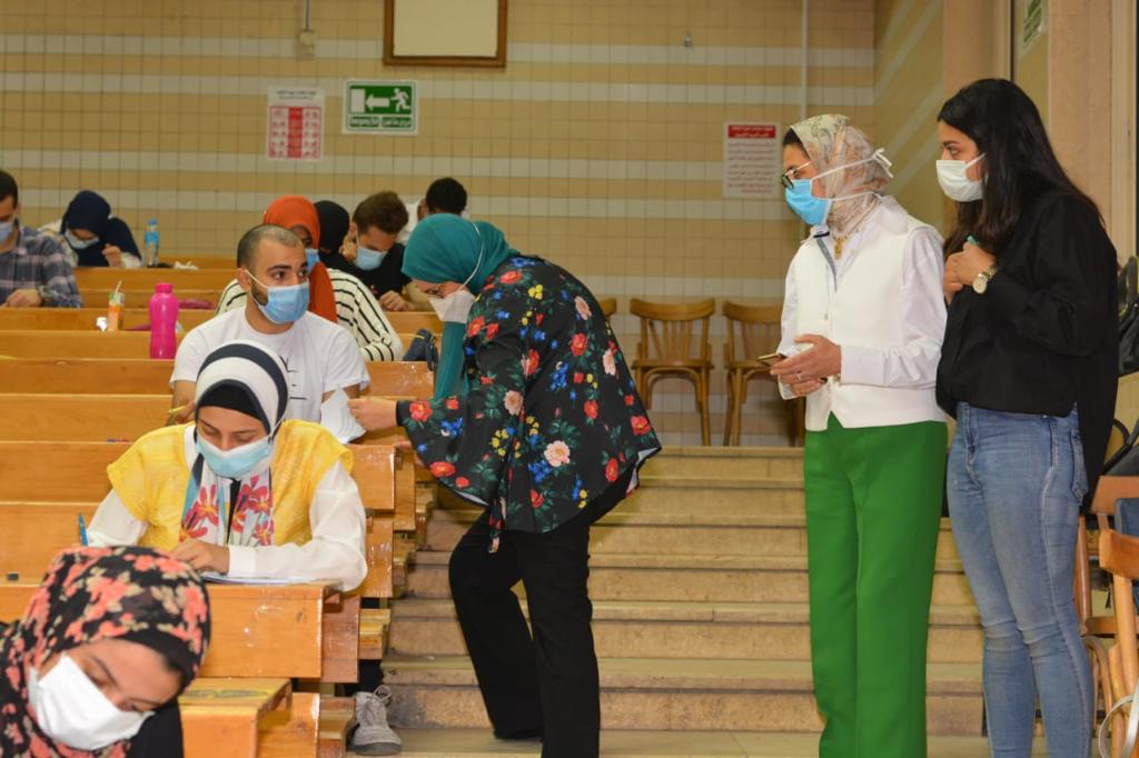 وعقدت الامتحانات في أماكن جيدة التهوية، مع وجود مسافة آمنة بين ديسكات الطلاب أثناء الامتحانات وتوفير مطهرات لليد في جميع اللجان والكنترولات، وتخصيص غرفة للعزل بالكلية أثناء فترة الامتحانات، فيما يقوم الطلاب بوضع أوراق الإجابة في الصناديق المخصصة لها، بالإضافة إلى تطهير اللجان بين فترات الامتحان وإخلاء الكلية عقب الامتحان لمنع التجمعات، وقام اتحاد الطلاب، بالتعاون مع رعاية الشباب بتوزيع عصائر وشيكولاته على الطلاب.