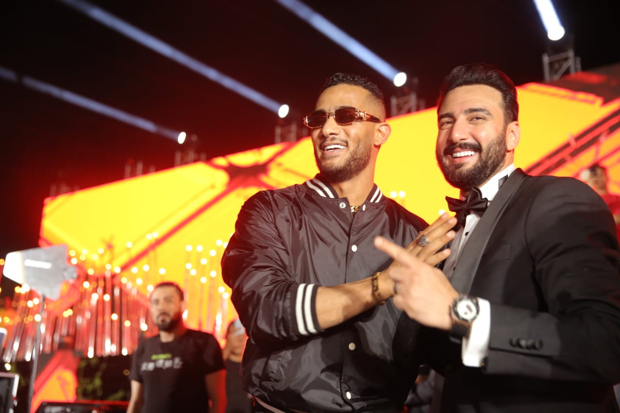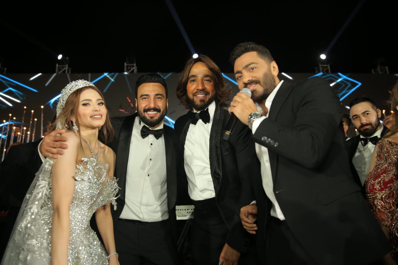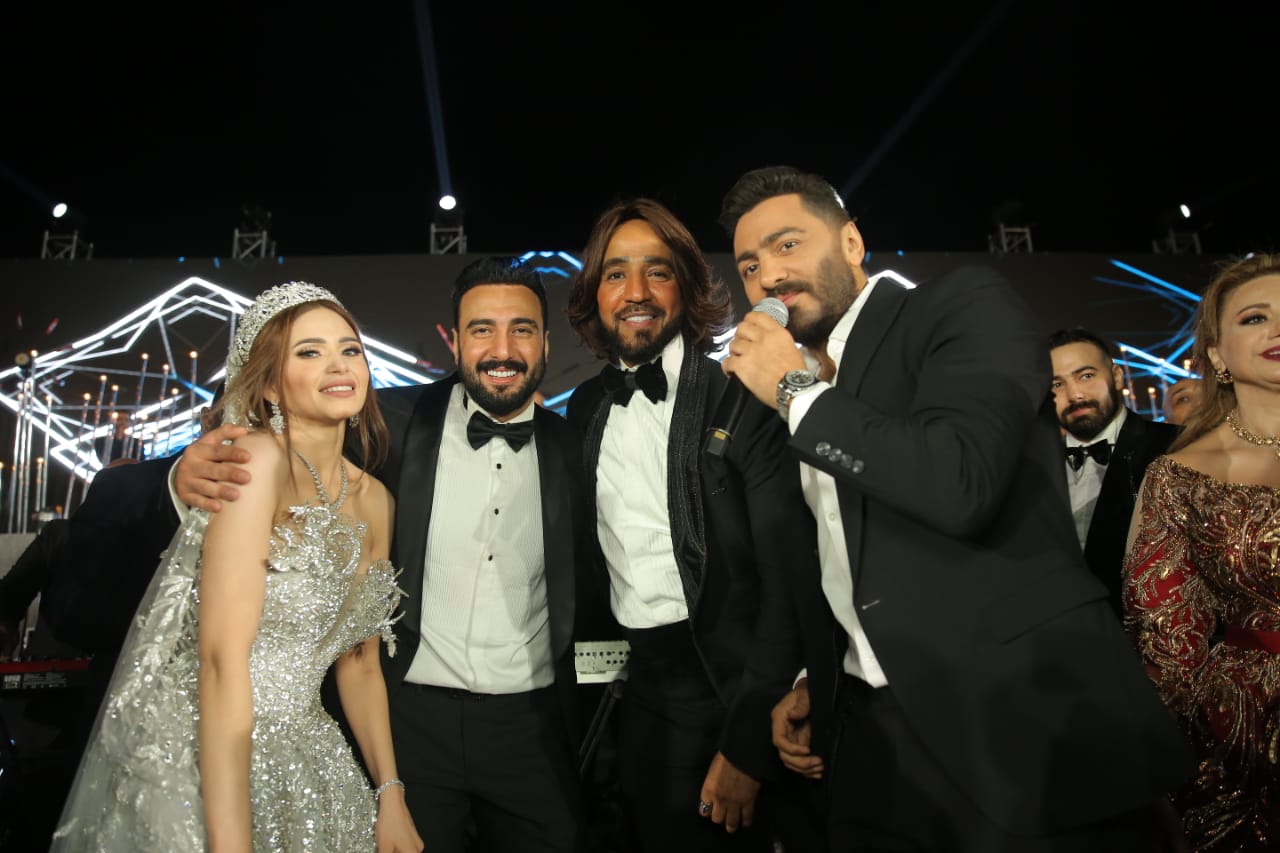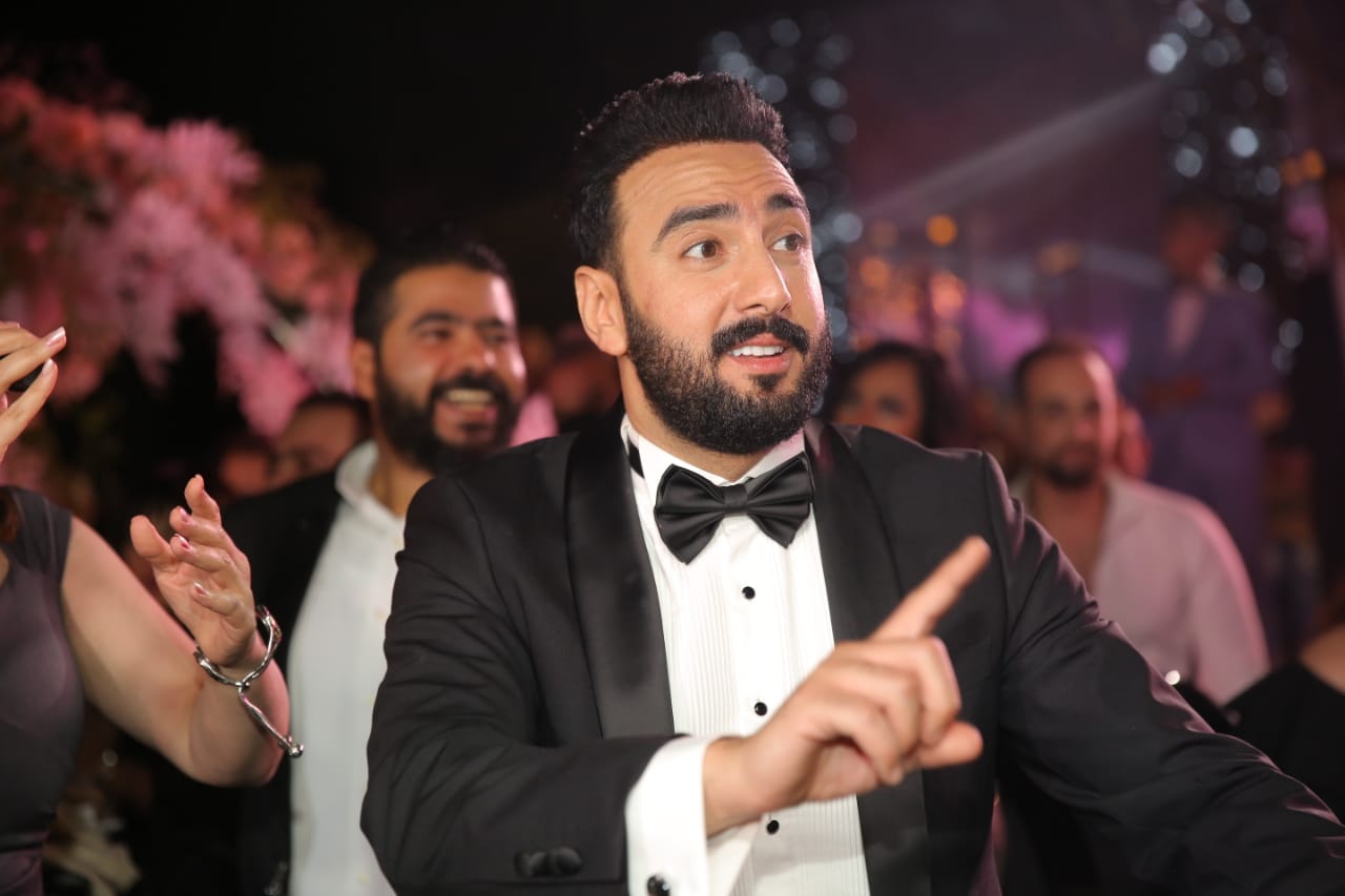 محمد رمضان وتامر حسني في حفل زفاف مصمم الاستعراضات النارية سامي يوسف وساندي صفي الدين (صور)