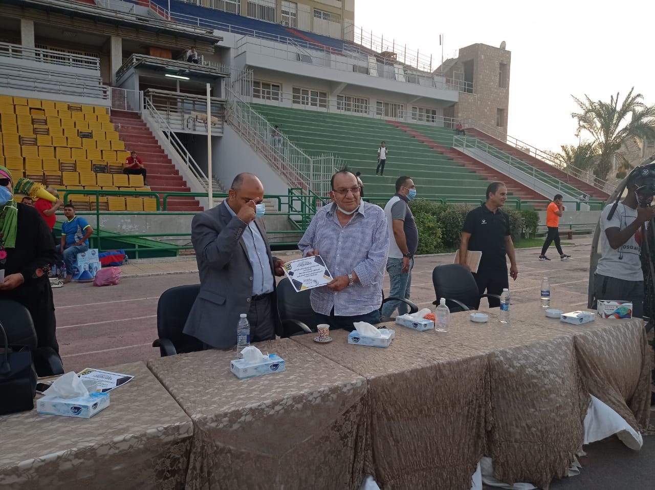 وحرص محمد عادل فتحي، المشرف العام على فريق الكرة وعضو مجلس الإدارة، وعماد النحاس المدير الفني للفريق الأول بنادي المقاولون العرب، على تكريم فريق ذوي الهمم، بعد فوزهم في المباراة.