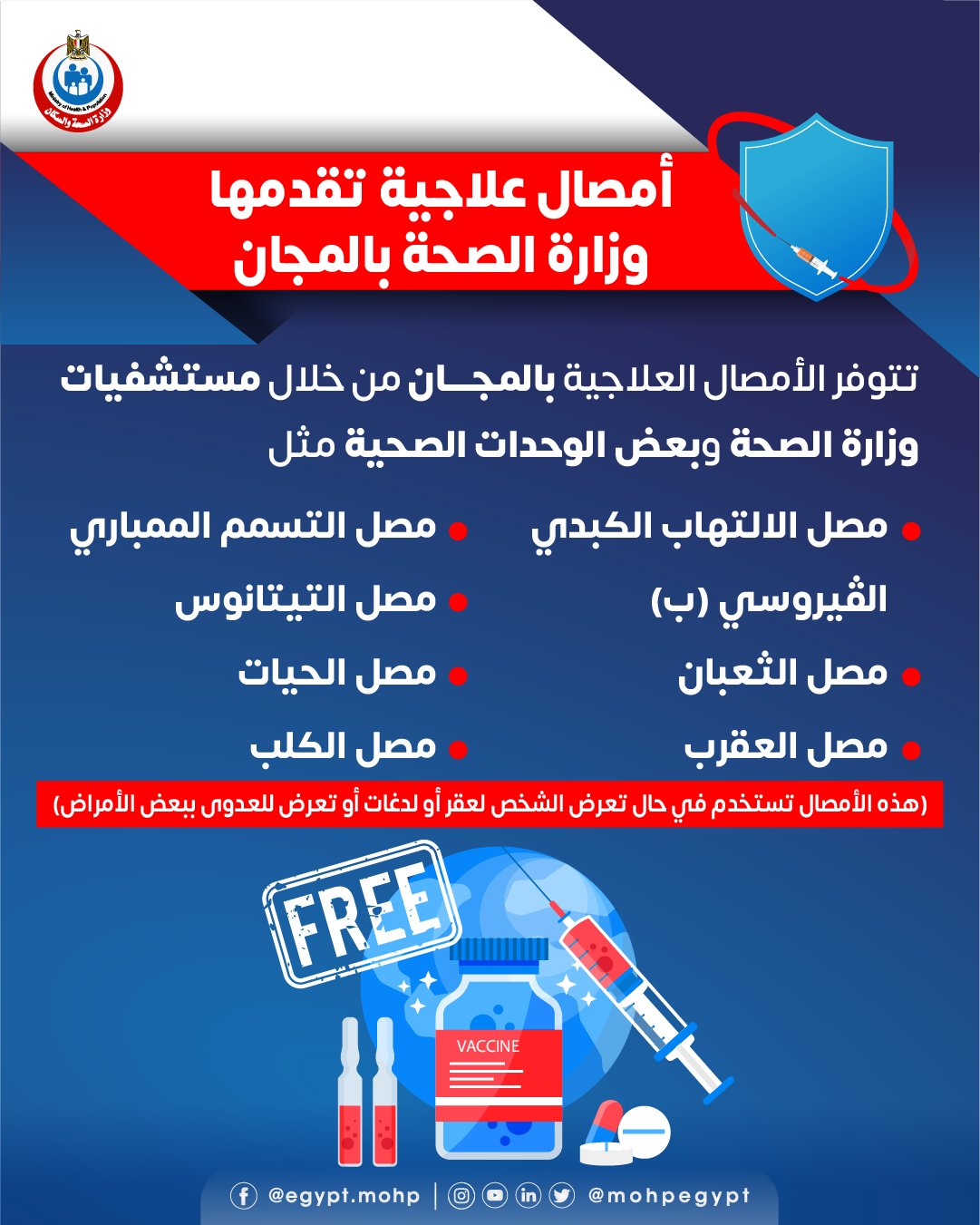 تعرف على الأمصال الموجودة بالمجان عبر وزارة الصحة (انفوجراف)