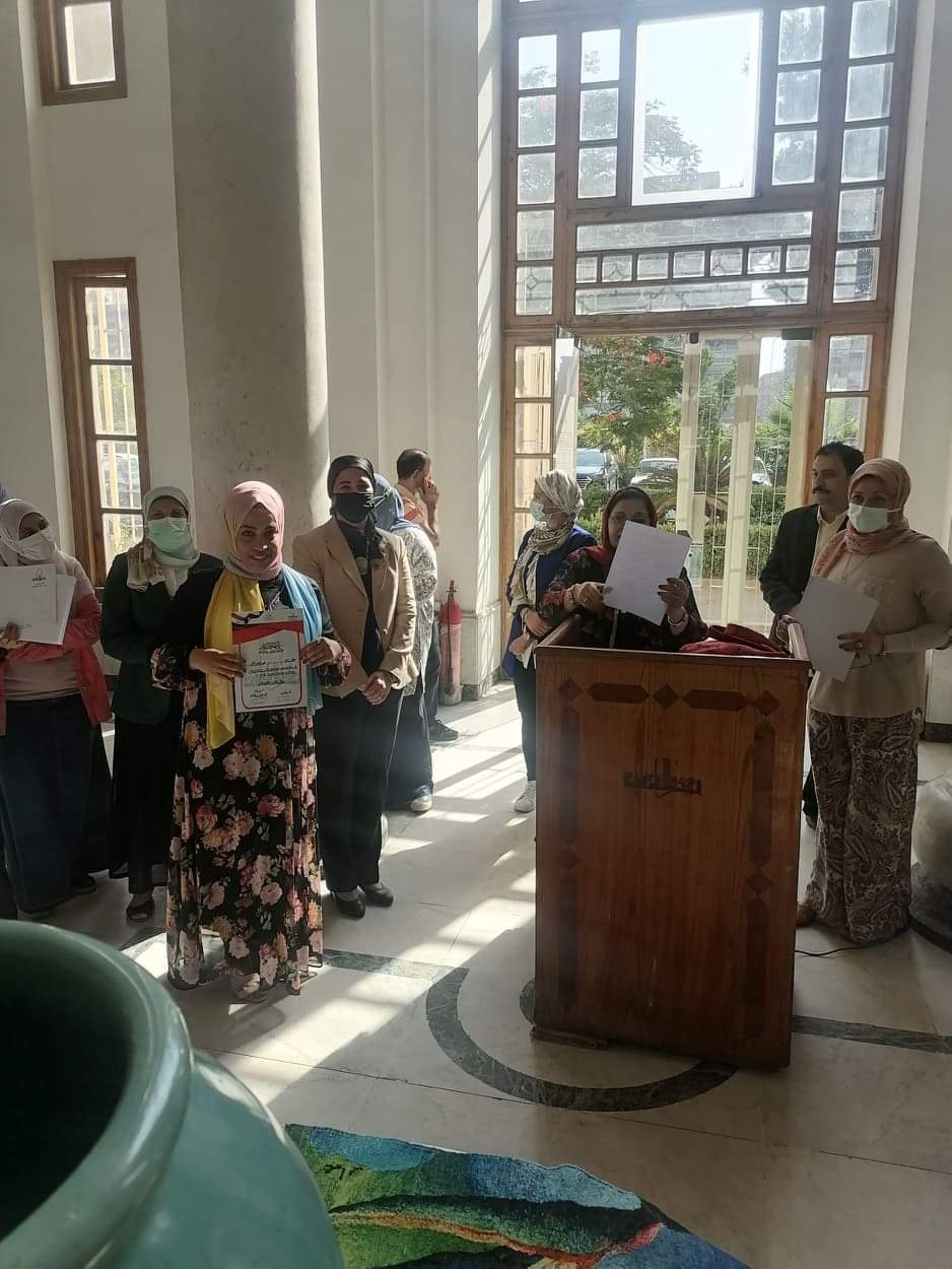 ثالثًا: المركز الثالث مُنح مناصفة بين: أحمد أمين أحمد شلبي، عن عمله فى مجال الخيامية، ومروة قباري كامل مرسي، عن عملها في مجال الجلود.