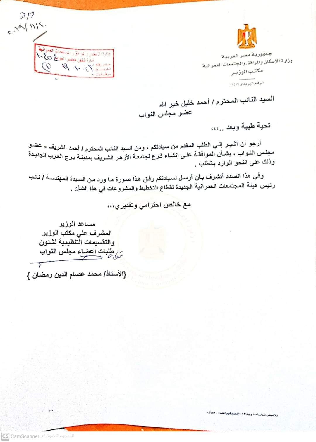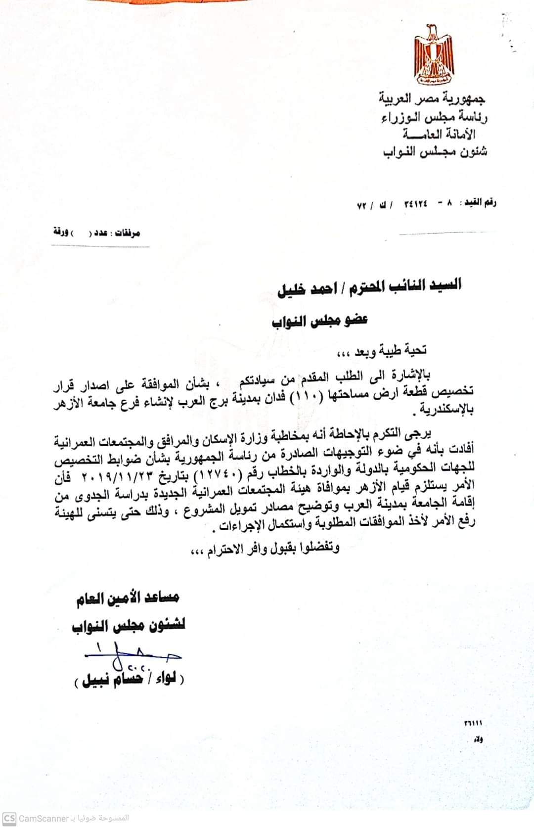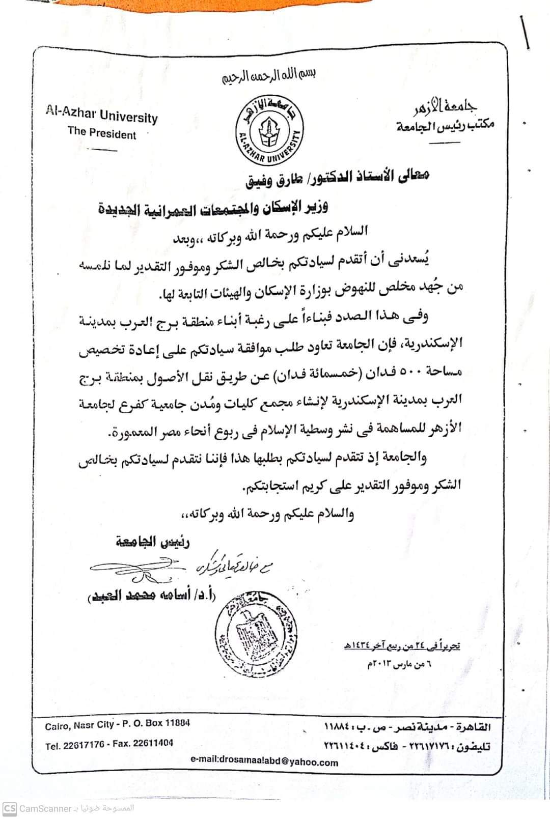 إنشاء فرع جديد لجامعة الأزهر في برج العرب غرب الإسكندرية (مستند)